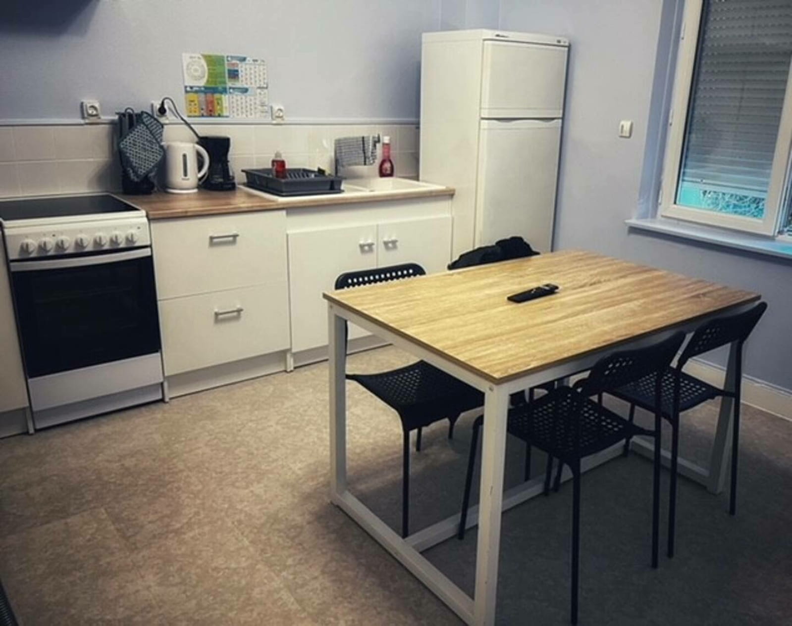 Dans le bâtiment, chaque appartement, fraîchement rénové, est composé de quatre lits simples (deux lits simples dans une chambre et deux canapé-lit individuels dans le salon). Les appartements sont situés au 1er et 2ème étage du bâtiment.
