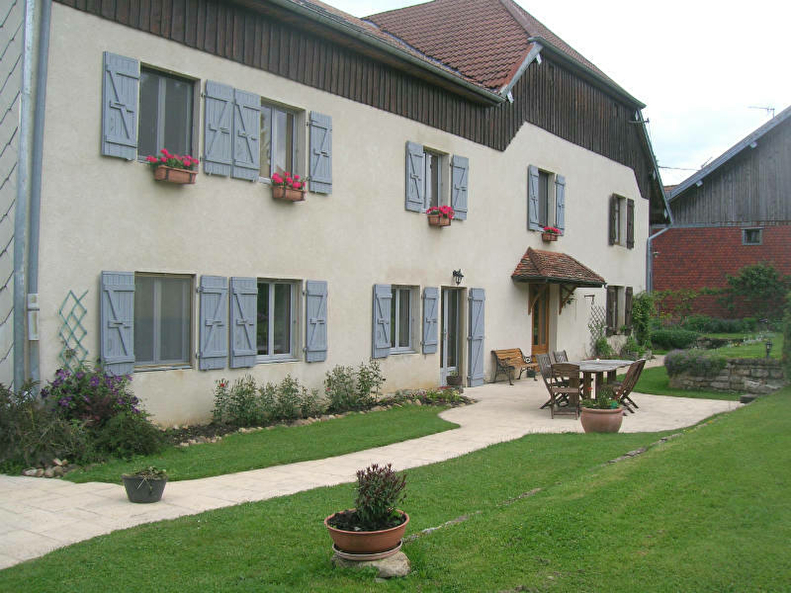 1 chambre aménagée dans vaste maison traditionnelle des propriétaires et 2 chambres dans petite maison annexe, à proximité de la forêt de Joux et de la Route des Sapins. Station thermale de Salins les Bains à 16 km. Beau terrain aménagé. Accès piscine privée des propriétaires (baignade non surveillée) et cuisine d'été dans petit chalet.