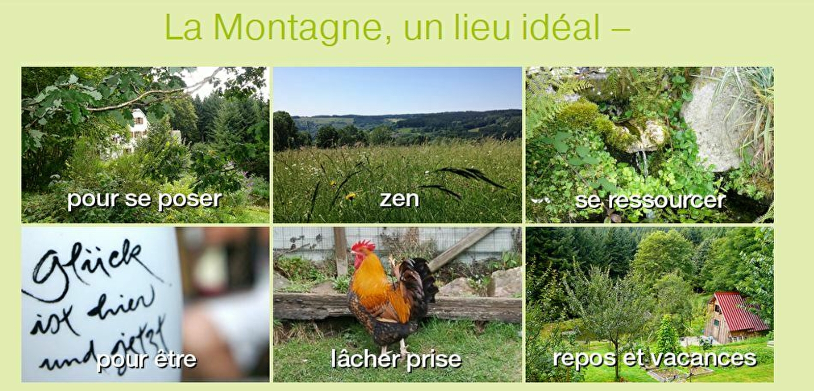 Le lieu-dit La Montagne, dans les contreforts du sud-ouest des Vosges, est un hameau de fermes éparses. Notre ferme est située dans une clairière ensoleillée, au milieu de la forêt, et dispose de sa propre source dont l'eau est d'excellente qualité.
