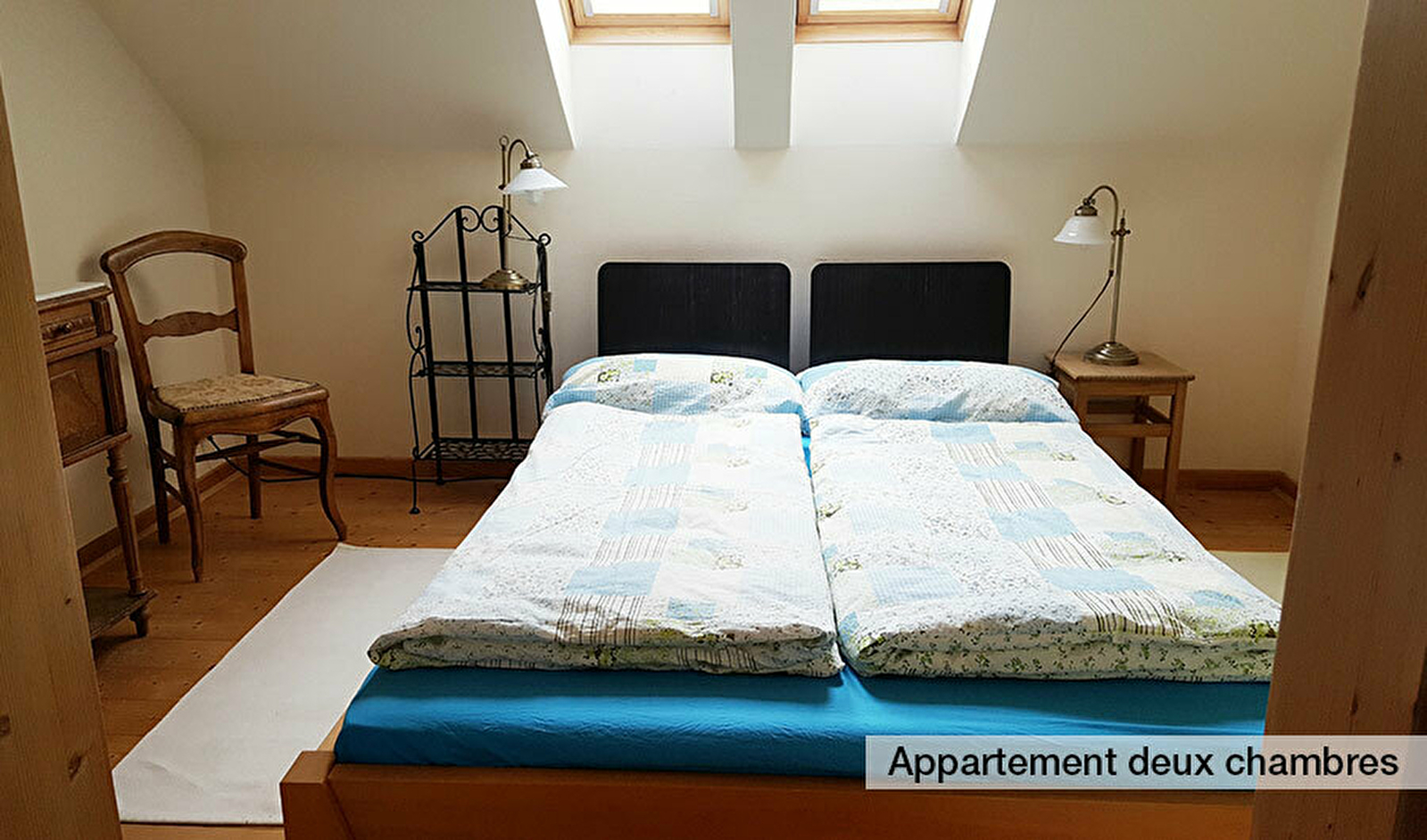 - Appartement avec deux lits/une personne, coin cuisine, frigo, douche privée.