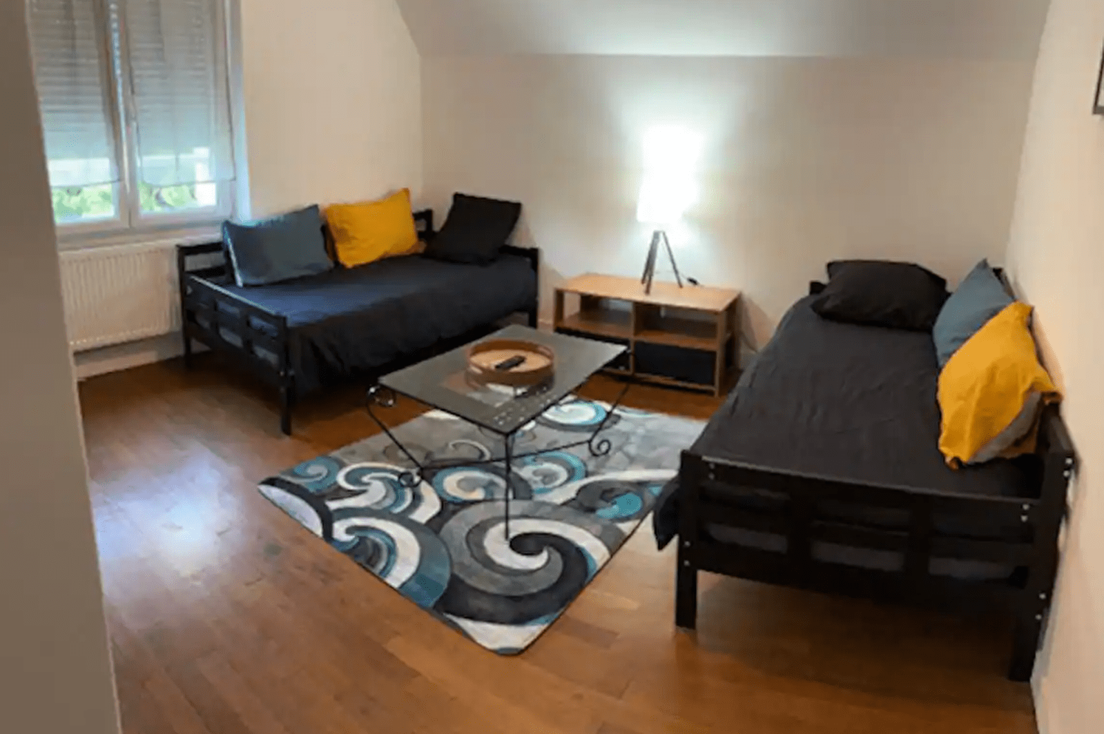 Chaque appartement, fraîchement rénové, est composé de quatre lits simples (deux lits simples dans une chambre et deux canapé-lit individuels dans le salon). Les appartements sont situés au 1er et 2ème étage du bâtiment.