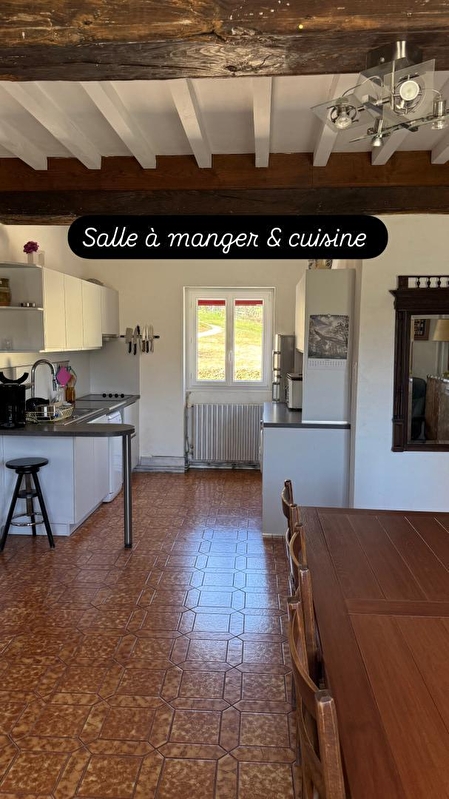 Composition : Gîte mitoyen aux propriétaires (indépendance totale sans vis-à-vis). Wifi. Chauffage central au bois. Rez-de-chaussée : cuisine avec coin-repas, séjour-salon (avec cheminée), salle d'eau (douche), Wc indépendant. 1er étage : 3 chambres dont 1 en mezzanine (lit 2 p. 160x190cm / 2 lits 1 p. 90x190cm / 2 lits 2 p. 140x190cm), salle d'eau (douche, Wc). Véranda (ping-pong / local vélos). Jardin privatif sur grand terrain clos en commun. Parking privé. Commerces 15 km. Gare 20 km. Gare Creusot TGV 55 km.