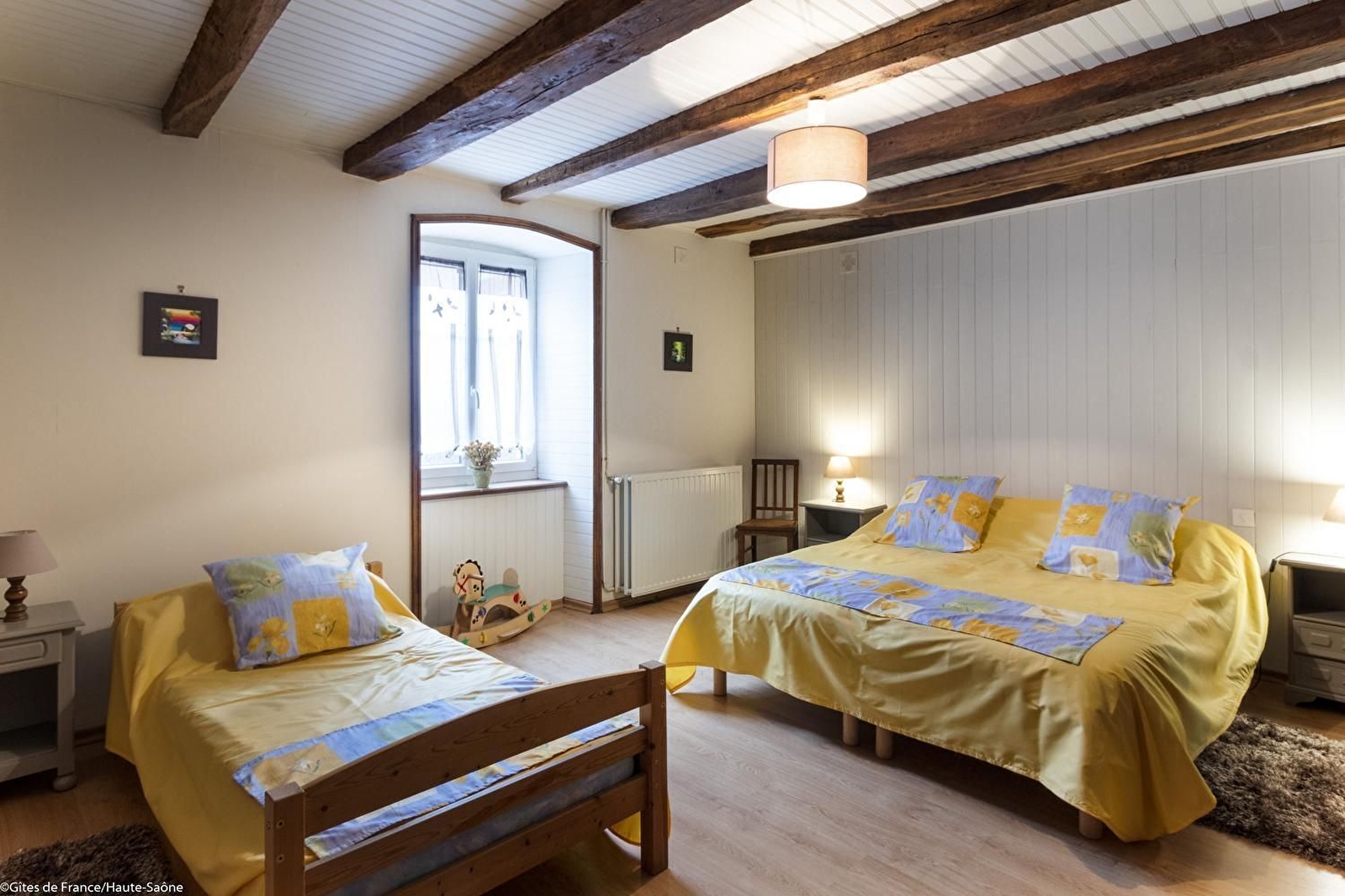 Située dans le paisible village de Brotte-lès-Ray, la maison de vacances Arthémise est idéale pour des séjours en famille ou entre amis. Cette maison individuelle se compose au rez-de-chaussée d’une entrée, d’un séjour chaleureux, d’une cuisine conviviale avec coin repas, d’une chambre familiale comprenant deux lits simples jumelés, un lit simple et un lit bébé, ainsi que de deux salles d’eau et d’un WC indépendant. À l’étage, vous trouverez une chambre en mezzanine fermée avec deux lits simples, une chambre avec un lit double, un WC ainsi qu’une agréable salle de détente équipée de jeux, télévision et espace lecture.