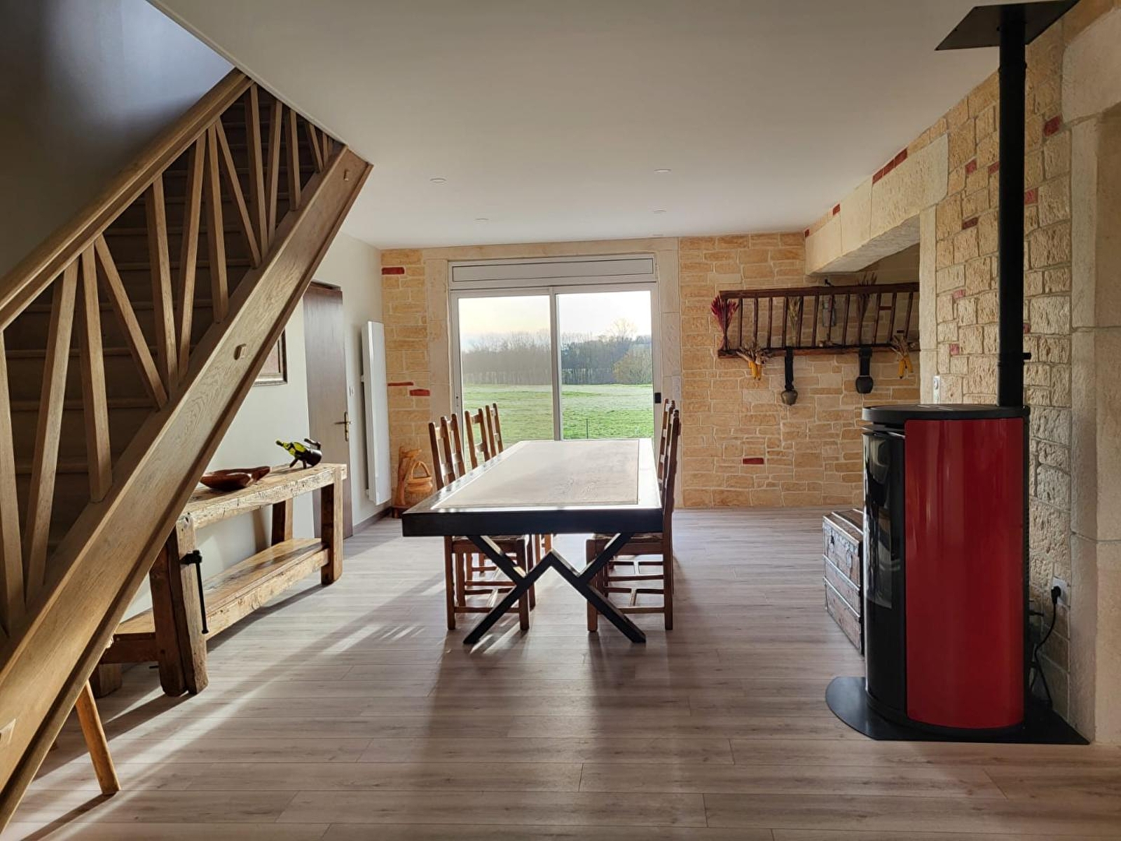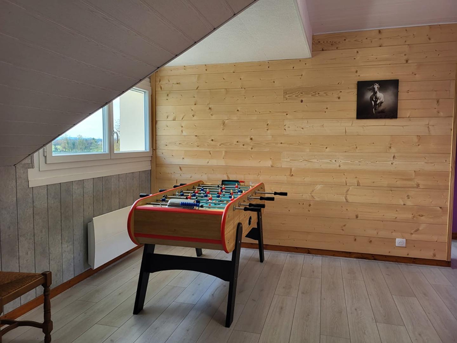 Située au cœur du village de Foulenay, cette maison indépendante vous accueille dans un environnement paisible, idéal pour un séjour en famille ou entre amis. Au rez-de-chaussée : grande pièce de vie lumineuse comprenant un salon convivial avec canapé convertible (pouvant accueillir 1 ou 2 personnes supplémentaire sur demande et avec supplément), TV, une salle à manger équipée d'un poêle à granulés et cuisine intégrée entièrement équipée, une salle d'eau avec ouche et WC. A l'étage, mezzanine aménagée avec baby-foot, parfaite pour les moments de détente, 3 chambres chacune équipée d'un lit double (2 avec 1 lit 140*190 et 1 avec un lit 160*200) et une salle d'eau avec douche et WC. Côté extérieur, profitez d'une terrasse avec salon de jardin, transats et barbecue, offrant une vue imprenable sur la nature environnante. Calme et quiétude assurés. Borne de recharge électrique sur place en supplément. Idéalement située, à 5 mns de la voie verte de la bresse Jurassienne, qui s'étend sur une quarantaine de kilomètres, vous pourrez également profitez en période estivale de la base de loisirs de Desnes ou encore découvrir, Dole, ville d'art et d'histoire.