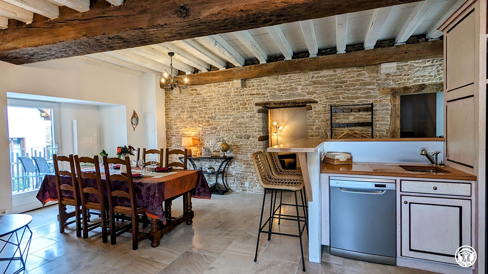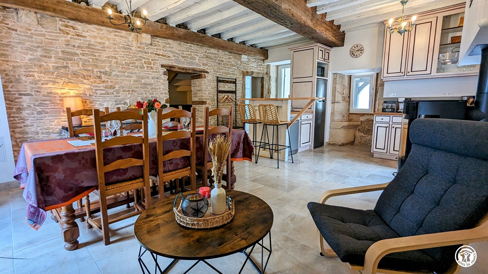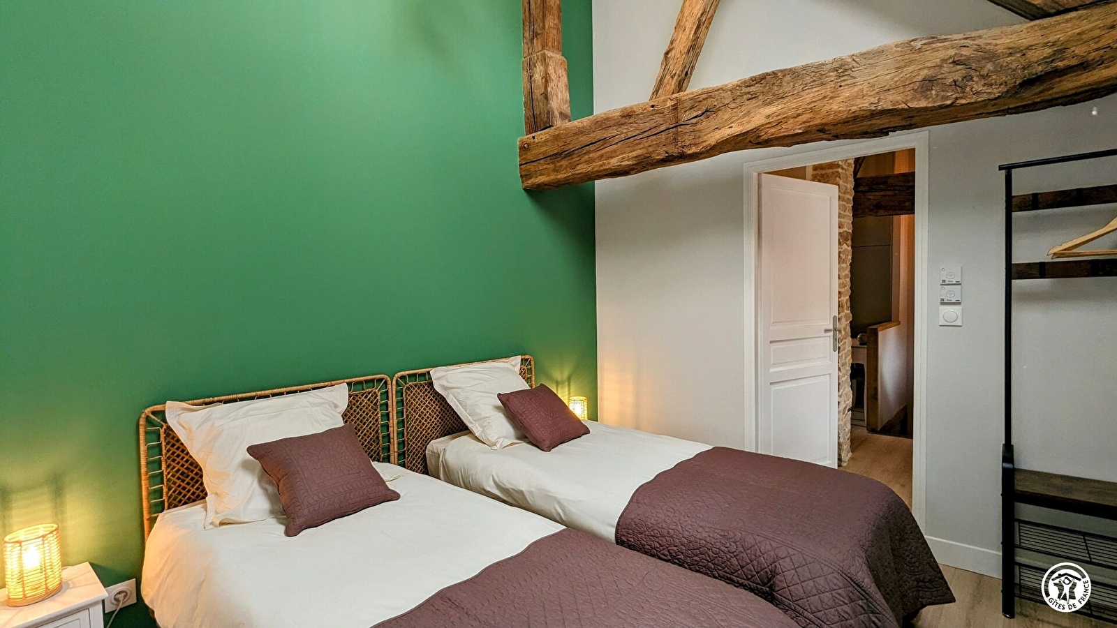 Dans le charmant village viticole de Chambolle-Musigny, sur le domaine des propriétaires, le gîte "Au Brin de Vigne" (accès par un escalier extérieur) vous offre : cuisine équipée ouverte sur salle à manger, petit coin salon avec poêle à bois, accès direct à la terrasse. Salon cosy avec TV, 1 canapé convertible 1 place, wifi. 1 salle d'eau avec WC. A l'étage : couloir desservant 2 chambres : la chambre "les Groseilles" avec 1 lit de 160X200 cm, la chambre "les Fouchères" avec 2 lits de 80x190 cm jumelables, 1 salle d'eau avec WC. Terrasse côté rue (peu de passage), avec salon de jardin et plancha électrique. Parking privé sur le domaine (cour fermée) pour 1 véhicule. Possibilité de recharger une voiture électrique (gratuitement). Lit parapluie et chaise haute sur demande. Gîte non fumeur.