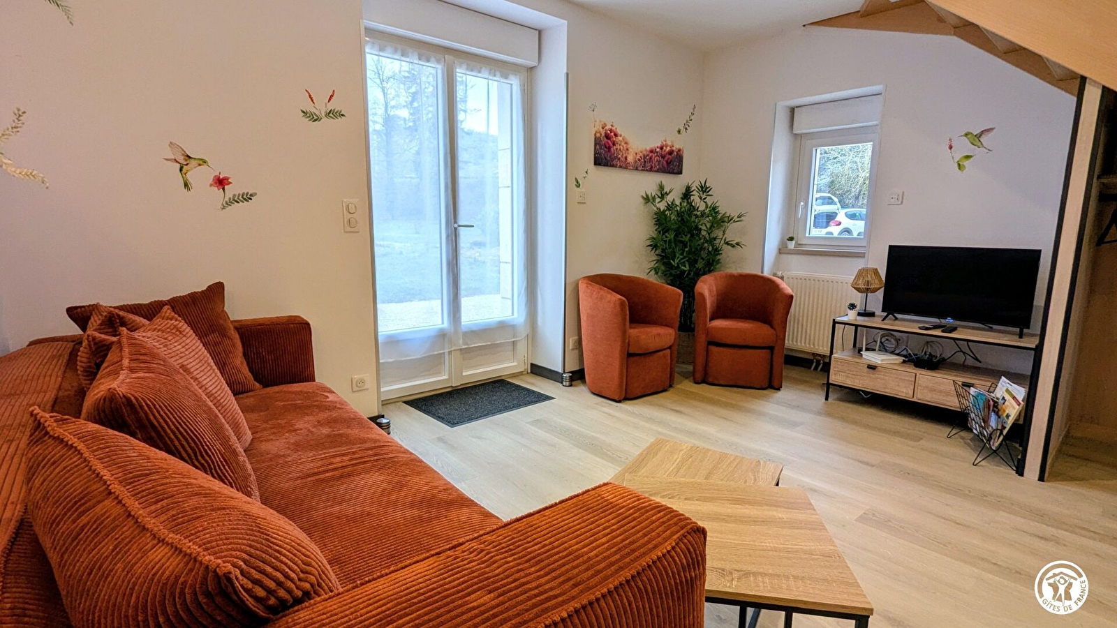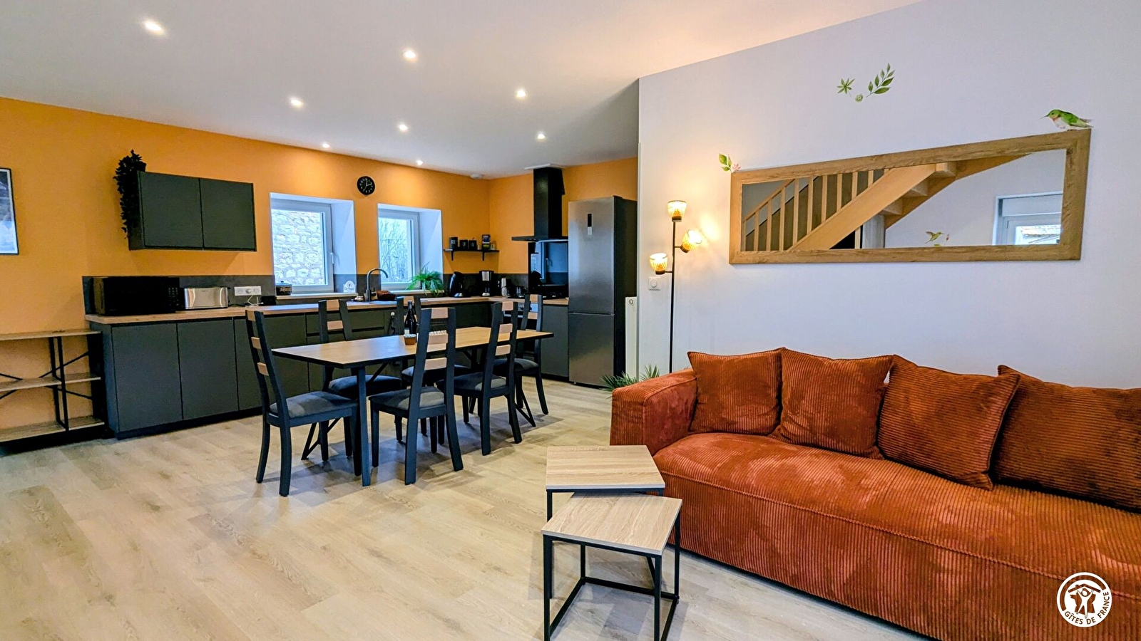 Dans un petit village paisible, sur la Route des grands vins de Bourgogne, le gîte " Au Fil de l'eau", maison entièrement rénovée mitoyenne à la maison des propriétaires, vous offre : au rez-de-chaussée : grande pièce de vie avec cuisine entièrement équipée (cafetière " Senseo" + cafetière filtre), ouverte sur salon/salle à manger, TV , Wifi, 1 chambre avec 1 lit de 160 cm, 1 WC indépendant, 1 salle d'eau. A l'étage : 1 palier avec bibliothèque , jeux de société , canapé convertible (1 personne supplémentaire sur demande), 1 chambre avec 1 lit de 160 cm et 1 chambre avec 2 lits de 90 cm (jumelables), 1 salle d'eau, 1 WC indépendant. Climatisation réversible à l'étage. Matériel bébé à disposition sur demande : lit parapluie, chaise haute, matelas à langer, baignoire, réducteur de WC, transat. A l'extérieur : Terrasse sans vis-à-vis, avec salon de jardin, barbecue. Accès en partie au jardin des propriétaires. Petite rivière peu profonde sur le terrain .Parking privé dans la propriété. Terrain non clos.