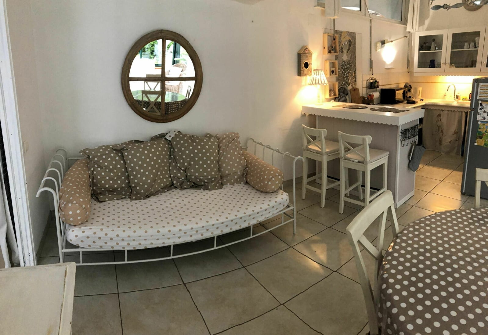 Le gîte est mitoyen à la maison du propriétaire et de plain-pied, il est composé d'une entrée indépendante, d'une cuisine équipée ouverte sur le séjour avec un coin repas et un espace détente (canapé, banquette lit, télé écran plat). Un accès direct à la terrasse privative et au jardin est possible depuis le séjour. Une chambre équipée d'un lit 140x190, un espace penderie et étagères et une salle d'eau attenante avec douche à l'italienne, wc et lavabo. Vous disposez d'un parking privé, d'un accès Internet et d'un équipement bébé sur demande. Possibilité de location de linge de toilette. Possibilité éventuelle de couchage de 5 personnes uniquement sur un week-end