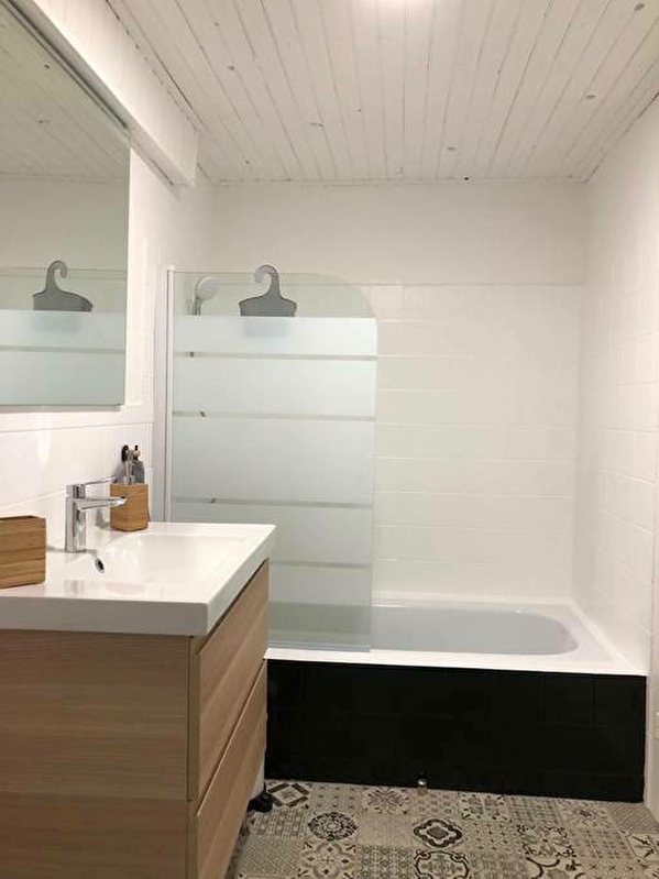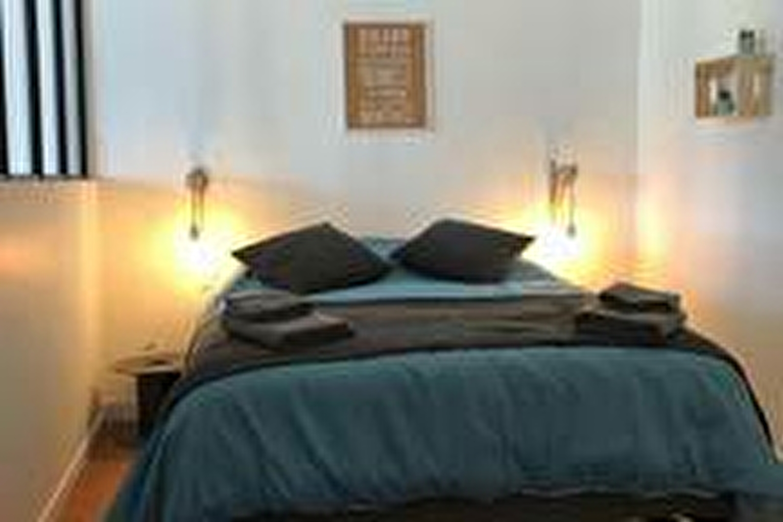 1er étage : 1 chambre (lit 2 p. 140x200), une « chambre » d'appoint en second jour avec verrière (2 lits 1 p. 80x200cm), salle de bain (baignoire/wc).