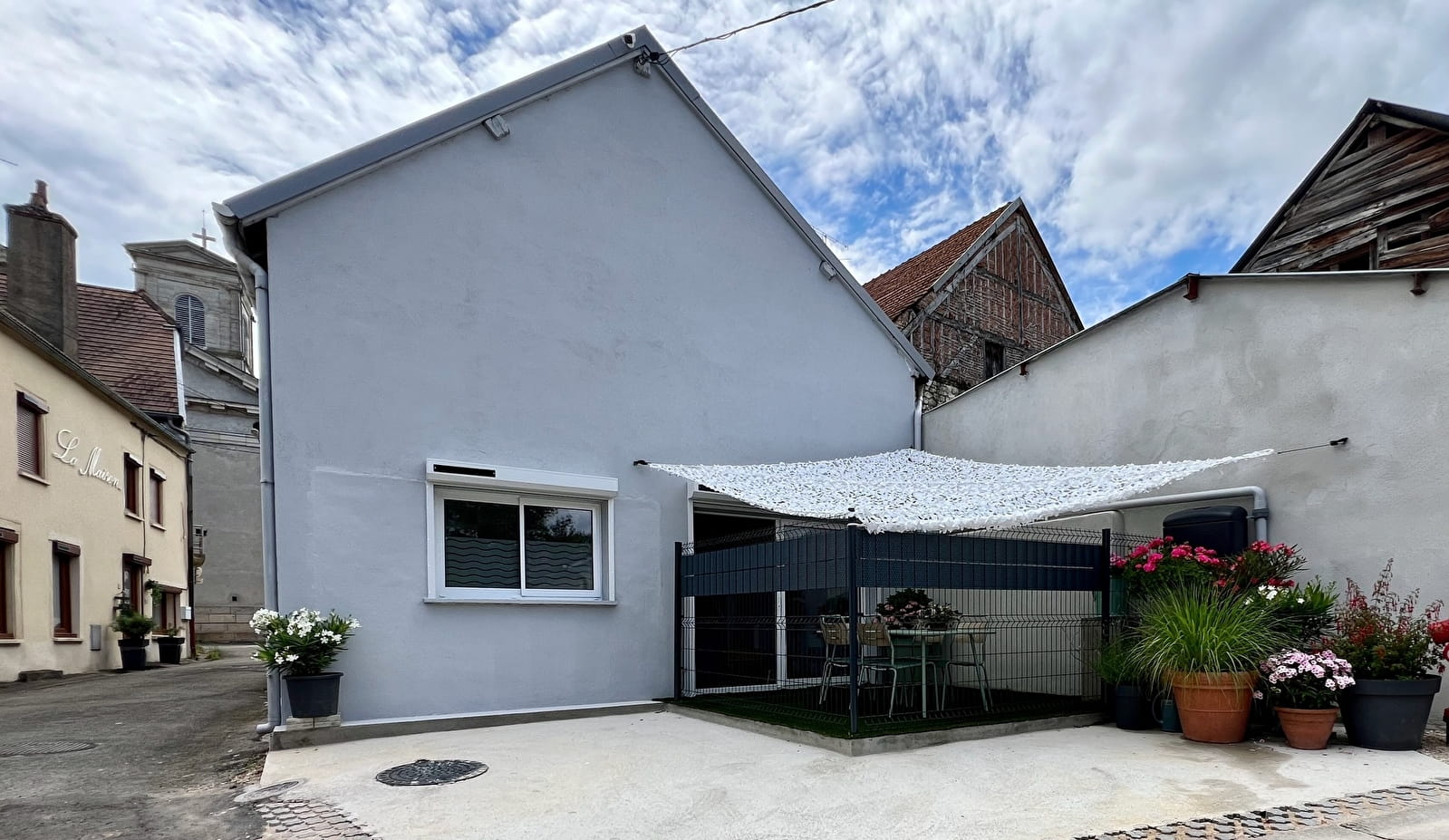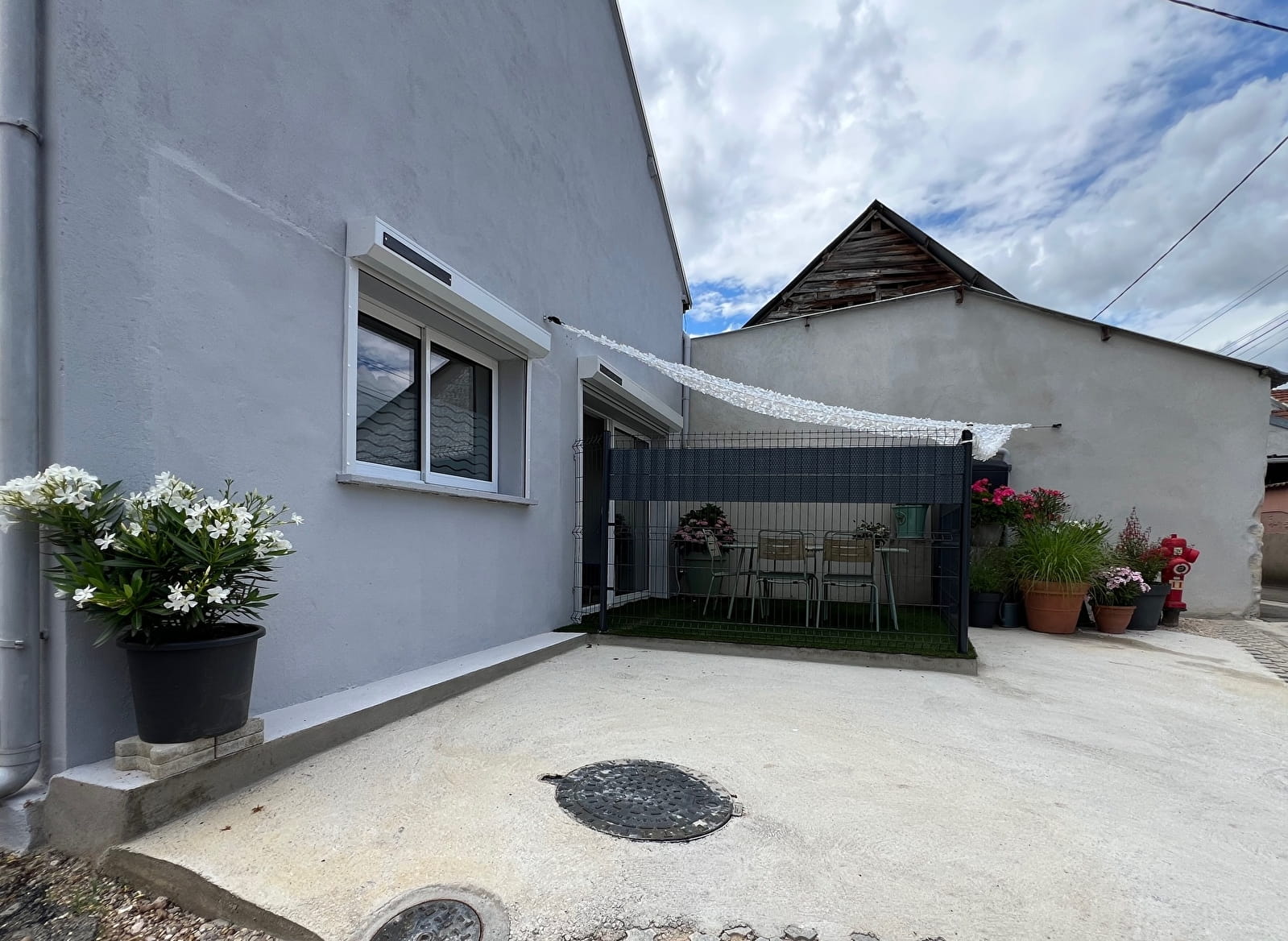 Le logement dispose d'une grande cour sécurisée, avec un auvent pour abriter voitures, vélos, motos et même remorques.