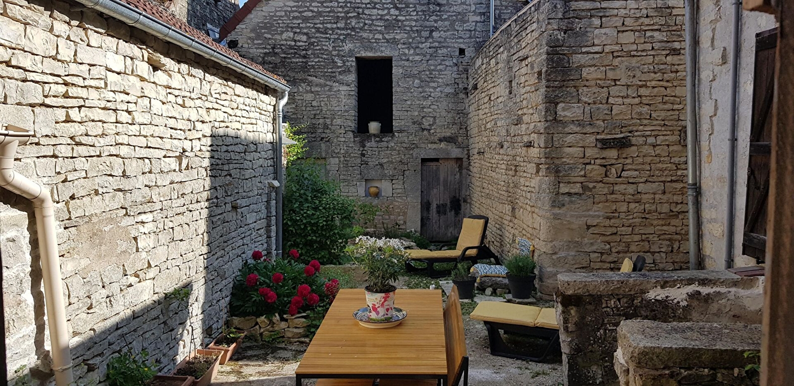 Au coeur du village, maison traditionnelle entièrement restaurée. Rez de chaussée : entrée avec poële à bois, salon avec TV, pièce de vie avec coin cuisine aménagée, salle d'eau/WC. Au 1er étage : 1 chambre 2 personnes (1 lit 180) avec salle d'eau/WC privatifs. Avec un accès extérieur par le garage, au 1er étage, 1 chambre indépendante 2 personnes (1 lit 180) avec salle d'eau/WC privatifs. Garage et cour intérieure privative close.