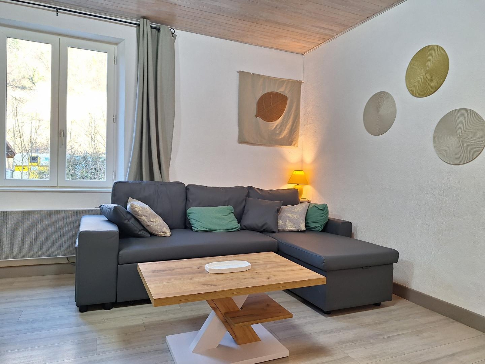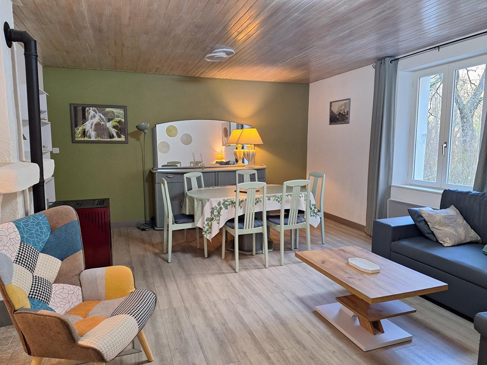 Au cœur d'un site exceptionnel, au pied de la cascade des tufs et des grottes de Baume-les-Messieurs, ce logement au rez de chaussée, de plain-pied sera le lieu idéal pour vos prochaines vacances. Elle se compose d'une cuisine équipée, d'un espace salon avec TV et poêle à granulés (fournis gratuitement), d'un coin salle à manger, d'une chambre double (1 lit 140*190), d'une chambre avec 2 lits simples (90*190), d'un WC indépendant, et d'une salle d'eau avec douche. Pour votre plus grand confort, les lits seront faits à votre arrivée et les serviettes sont fournies. Côté extérieur, vous pourrez profiter d'une terrasse avec salon de jardin, plancha et transats. Sur place, vous pourrez découvrir le magnifique site des cascades et des grottes, un restaurant se situe à 20 mètres du gîte. Vous pourrez également vous promener dans les ruelles de Château-Chalon, village situé sur un éperon rocheux et pratiquer la randonnée sur les nombreux circuits situés à proximité du gîte. Les lacs sont proches, celui de Chalain est moins de 30'.
