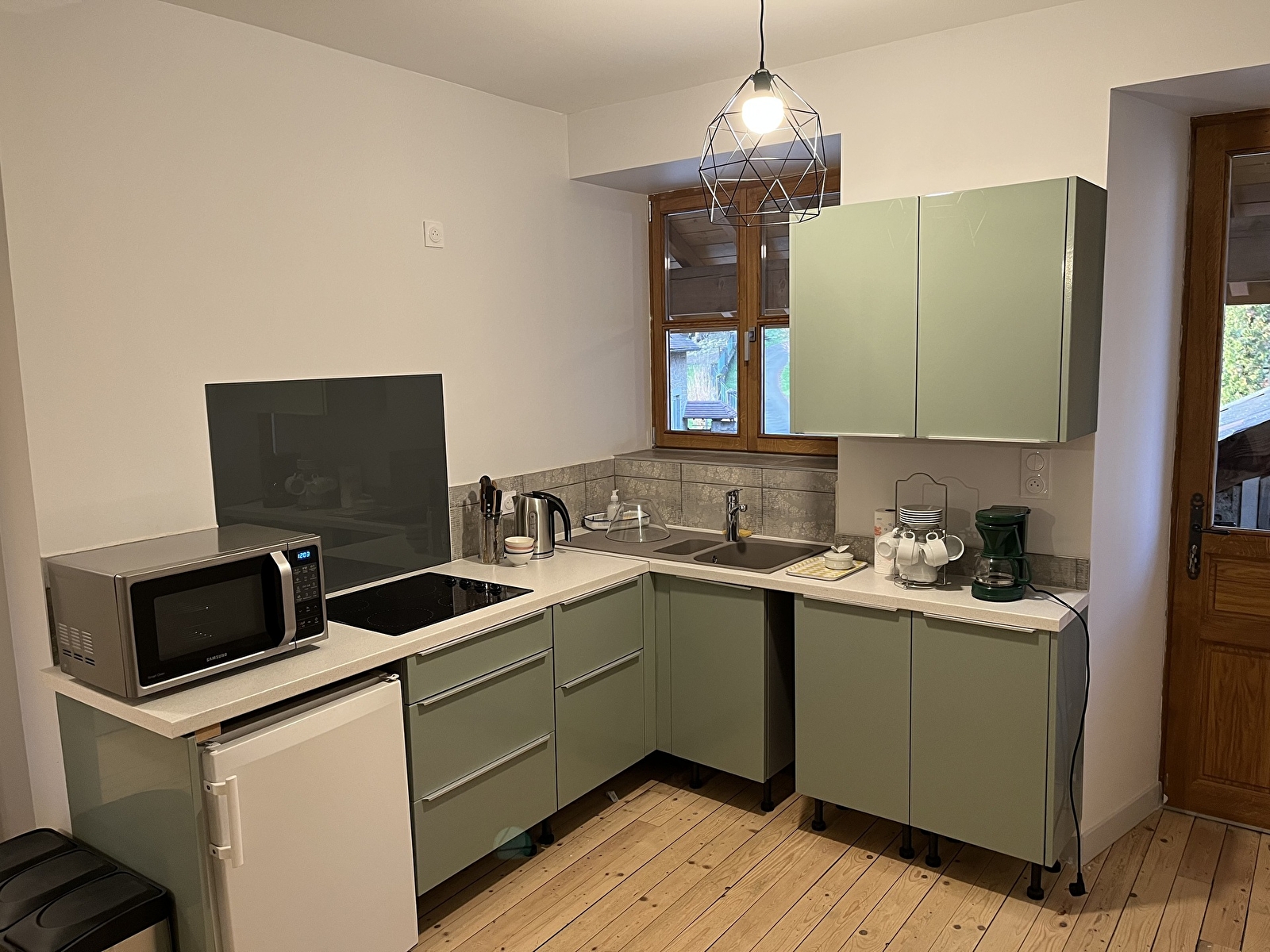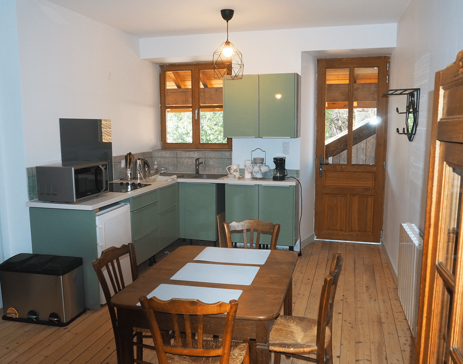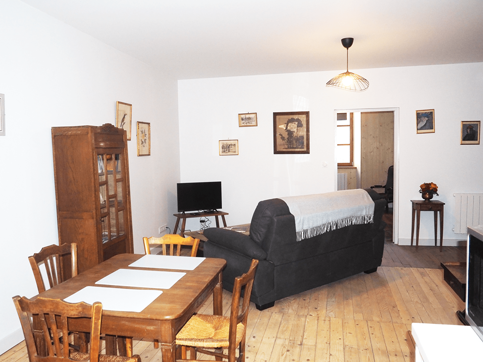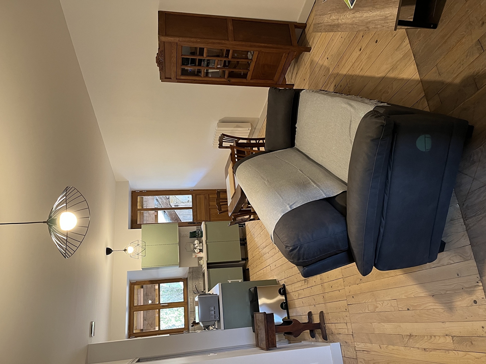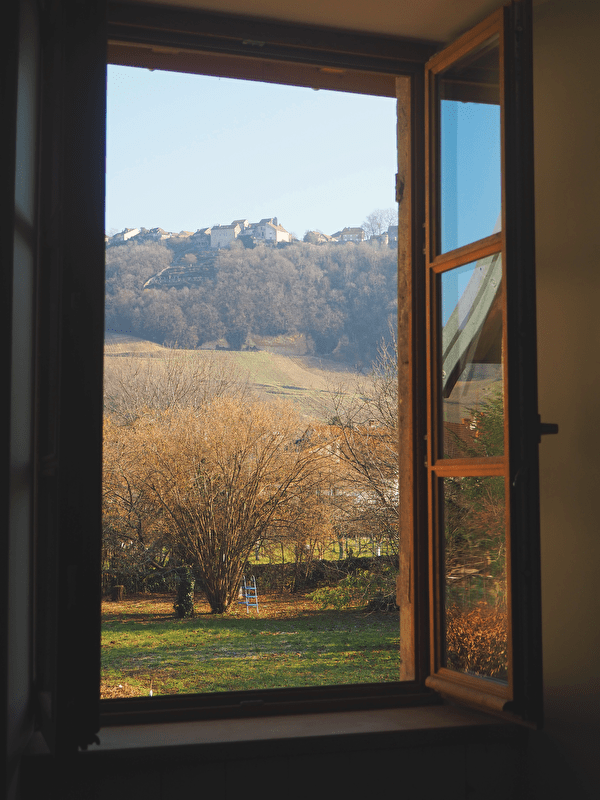 Appartement de 2 pièces dans une ferme de vignerons rénovée. Environnement calme au centre du village de Voiteur avec vue sur les vignes et Château-Chalon.
