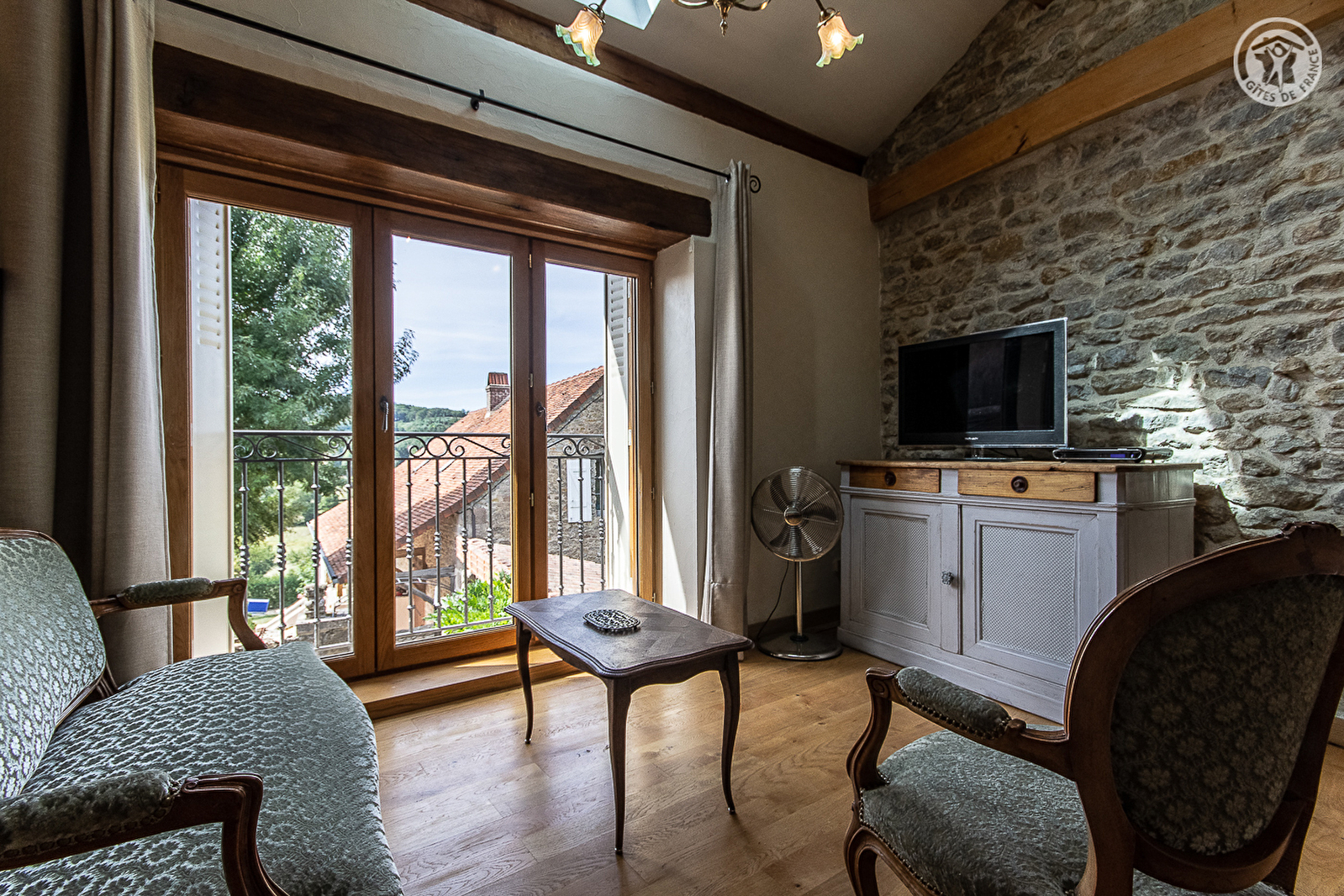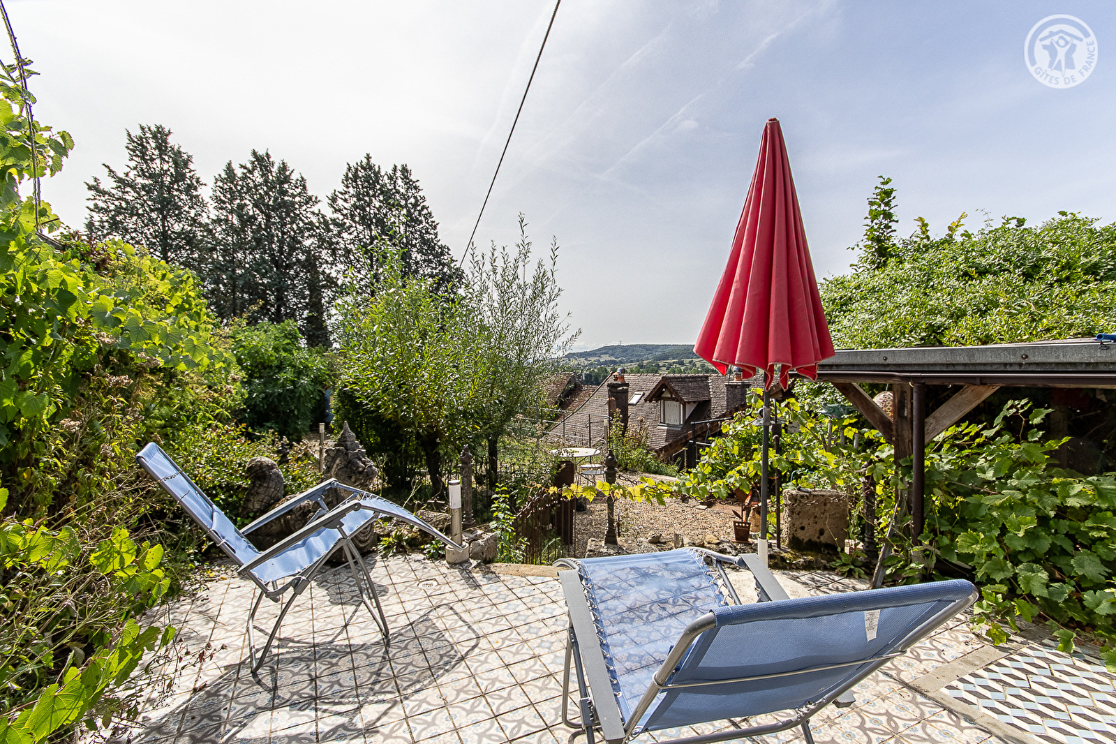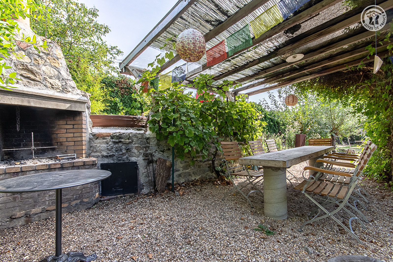 Ancienne dépendance agricole du XVIIIème siècle réhabilitée avec soins dans l'esprit d'une atypique maisonnette "tout confort" sise au sein d'un paisible hameau rural niché à flanc de coteau ouest bien exposé dominant la bucolique vallée du Guye, jouxtant les majestueuses ruines d'un château médiéval du XIIème siècle à deux pas du centre de Sigy-le-Chatel, pittoresque petit village pétri d'histoire (maisons à pigeonniers & galeries, église romane du XII, moulin du XIVe…). Au creux d'un magnifique cadre champêtre vallonné de bocage, prairies, rivières & forêts blotti au pied du site naturel du plateau de la Roche (belvédère unique dominant les vallées de la Grosne & de la Guye offrant une vue panoramique littéralement exceptionnelle s'étendant de la plaine de la Saône jusqu'aux Alpes). Site préservé de toute beauté en pleine campagne clunisoise. Gîte de bon confort. Chaleureux cachet campagnard contemporain marié à une restauration patrimoniale soignée (tomettes, mur en pierres… d'origine). Beaucoup de charme. Ambiance cosy. Large cour-terrasse close complétée par un agréable jardin clos totalement insolite, aménagé & fleuri dans un esprit "nature", doté d'une vaste terrasse abritée, d'une terrasse de détente panoramique, d'un terrain de pétanque & de nombreux équipements ludiques sécurisés (tyrolienne, cabane enfants avec mini mur d'escalade et toboggan, cages de foot, petit bassin abritant grouilles, tritons…). Belle vue dégagée sur la campagne environnante. Superbes paysages & panorama.