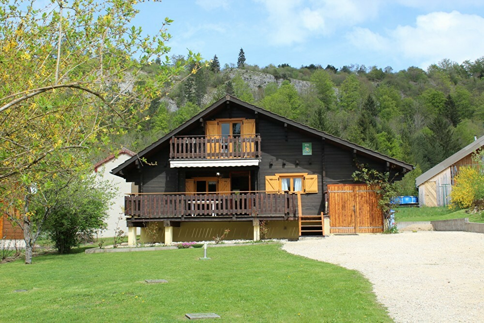 Chalet bois chaleureux et convivial dans un environnement calme. Le rez de chaussée est équipé d'un coin cuisine ouvert sur le séjour, deux chambres avec chacune un 1 lit 2 places, une salle de bain avec WC et douche. A l'étage : salon avec mezzanine + 1 coin nuit avec un lit double et un lit simple, petit balcon. Terrain attenant non clos, Local à ski, vélos..., salon de jardin, barbecue. Idéal pour les amoureux de la nature et de la pêche : rivières de 1ère catégorie (truites) à 500 m du gîte. Attraits touristiques : Gorges de la Langouette, cascade de la Billaude, Gorges, chutes et pertes de l'Ain à voir absolument !