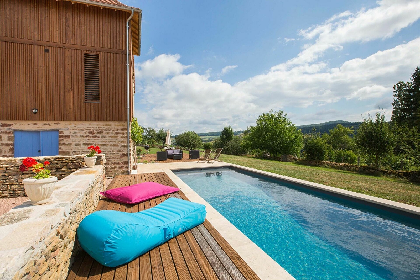 À quelques minutes seulement de Cluny en Saône-et-Loire (71), dans un petit hameau niché au cœur d’un paysage vallonné, découvrez notre maison d’hôtes en pierre avec son pigeonnier original en bardage bois.