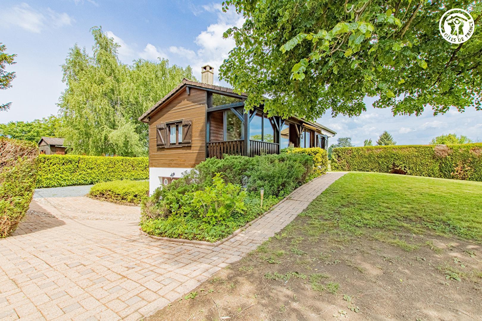 Jennifer & Romain vous accueillent au sein d'un ravissant petit chalet "eighties" - intégralement relooké avec soins - blotti au calme, en impasse au bout d'un chemin, en lisière immédiate de prairie (avec les paisibles vaches charolaises comme voisines privilégiées en saisons), au sein d'un mini hameau rural résidentiel ouvert sur les prés, niché sur les rives de l'Arroux ("biotope" réputé classé "rivière à migrateurs" accueillant de nombreuses espères rares & protégées / anguilles, truites sauvages, lamproies marines, brochets…). Totale tranquillité & relaxant cadre champêtre à deux pas du pittoresque bourg commerçant de Toulon-sur-Arroux, riche d'une église romane du XIe classée & d'un vieux pont médiéval aux treize arches daté de 1140 (nombreux petits commerces & services sur place dont supermarché à 2 km), lové en pleine campagne préservée entre bocage & forêt au creux de la verdoyante vallée de l'Arroux. Gîte de bon confort au chaleureux cachet campagnard & montagnard boisé un brin "vintage". Beau volume de la pièce de vie. Large terrasse abritée sous véranda dominant un intimiste jardin engazonné de 800m² (niché à l'abri des regards derrière des haies), où trône un agréable tilleul "ombrageant", agrémenté d'une insolite terrasse exotique ("paillote" en bambous) & d'un toboggan.