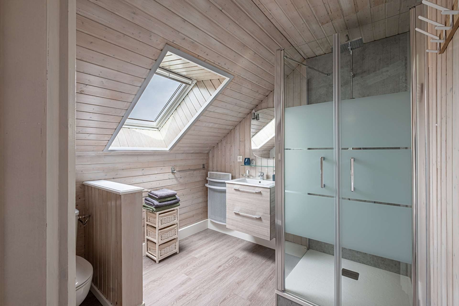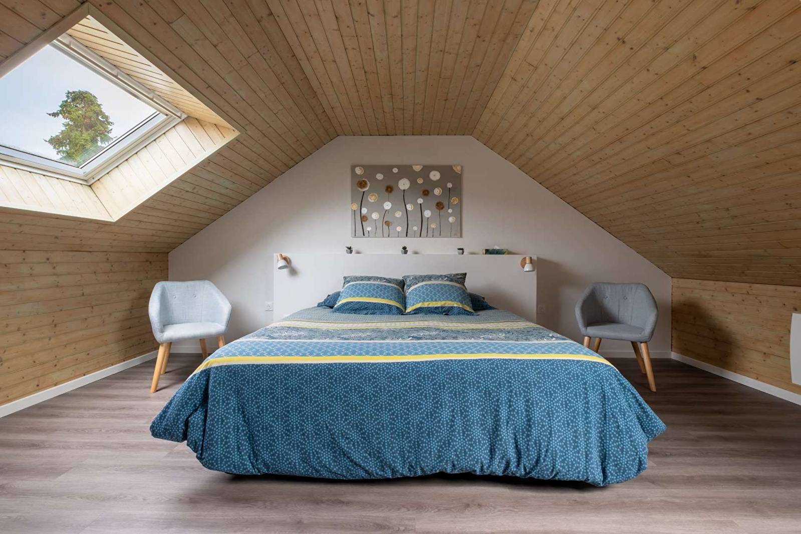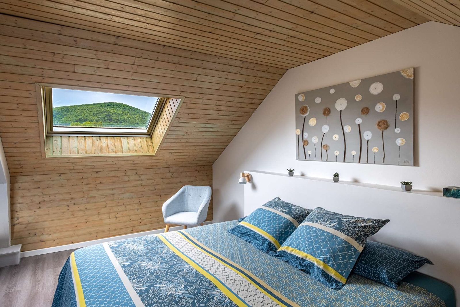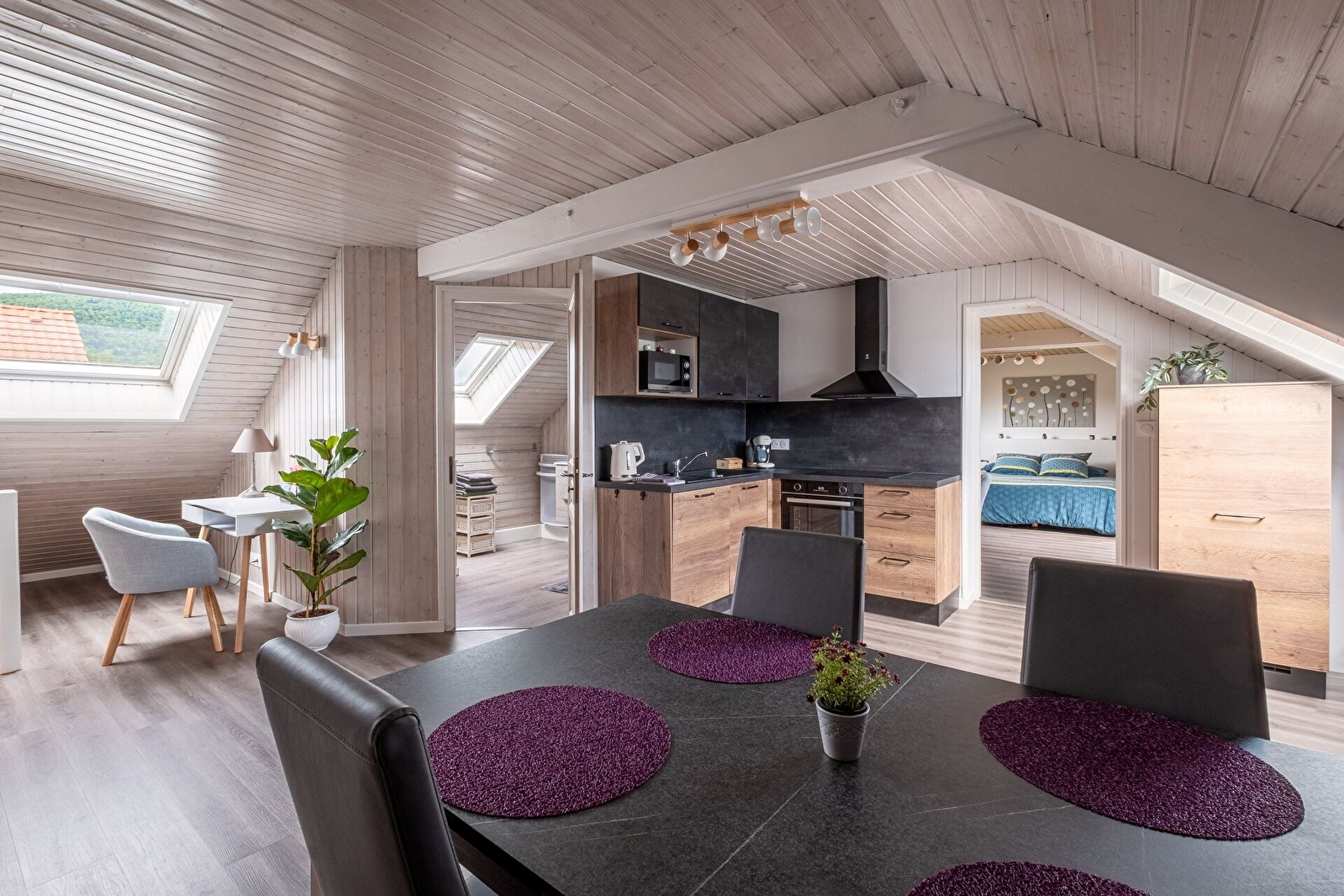 Le logement situé à l'étage de la maison des propriétaires est composé d'une chambre, un salon avec 1 grand lit ou 2 lits simples, une cuisine aménagée et une salle de bain. Entrée commune avec les propriétaires puis accès au logement par un escalier intérieur.
