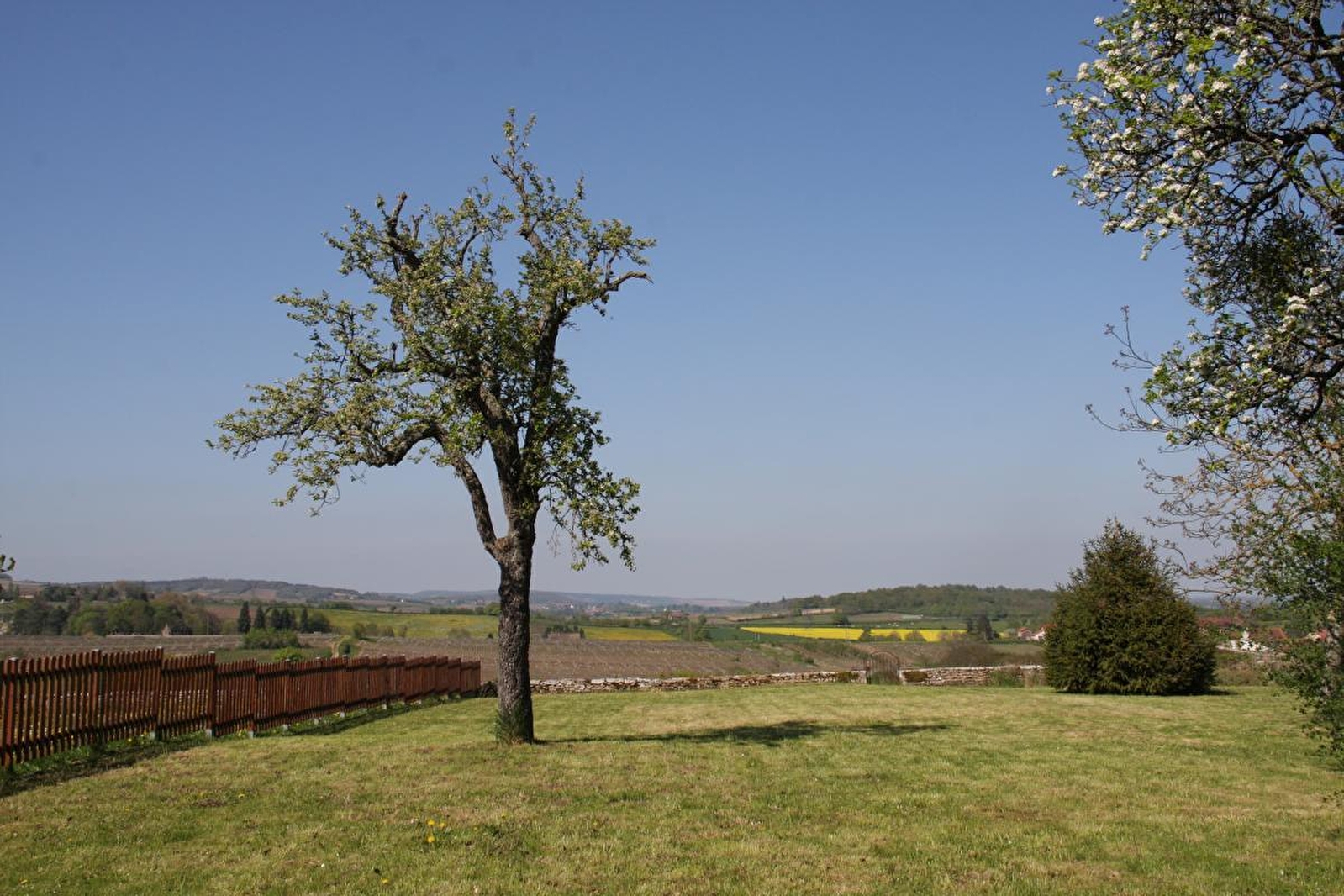 Bruno vous ouvre les portes d'une très élégante maison de vignerons de caractère chargée d'histoire datant du XVIIème siècle, sise au calme en pleine campagne de la Côte Chalonnaise, en bordure de ruelle, au sein d'un historique & pittoresque hameau viticole parfaitement préservé, lové "en balcon" tel un belvédère panoramique sur un petit coteau dominant un vaste plateau "ouvert" de vignobles. Totale tranquillité, blotti au creux d'un littéral paysage de "carte postale" de toute beauté, sublime écrin vallonné en partie classé & protégé en diverses "Zones Natura 2000" pour ses riches écosystèmes faunistiques & floristiques, conjuguant coteaux de vignes, bocages & prairies, sous les crêtes boisées des monts & collines environnants, parsemés d'imprenables points de vues sur la verdoyante campagne viticole chalonnaise, la vallée de la Grosne, les Monts du Jura & jusqu'au sommet enneigé du Mont Blanc trônant en toile de fond par temps clair ! Apaisant environnement à deux pas d'un bucolique étang de pêche aménagé & entouré de verdure (Etang des Valottes / carpes, tanches, gardons, truites…), non loin de vastes forêts domaniales sauvages. Somptueux cadre & paysages alentours. Spacieux gîte. Ambiance dépaysante d‘une ancienne demeure (dont demeurent de magnifiques plafonds voûté côté séjour) conjugué à un doux cachet "vintage". Large "terrasse sur cour" & agréable terrain "naturel" engazonné de 2000m² lové en lisière de vignobles, parfaite aire de jeux pour les enfants, doté d'une splendide vue dégagée sur la vallée.
