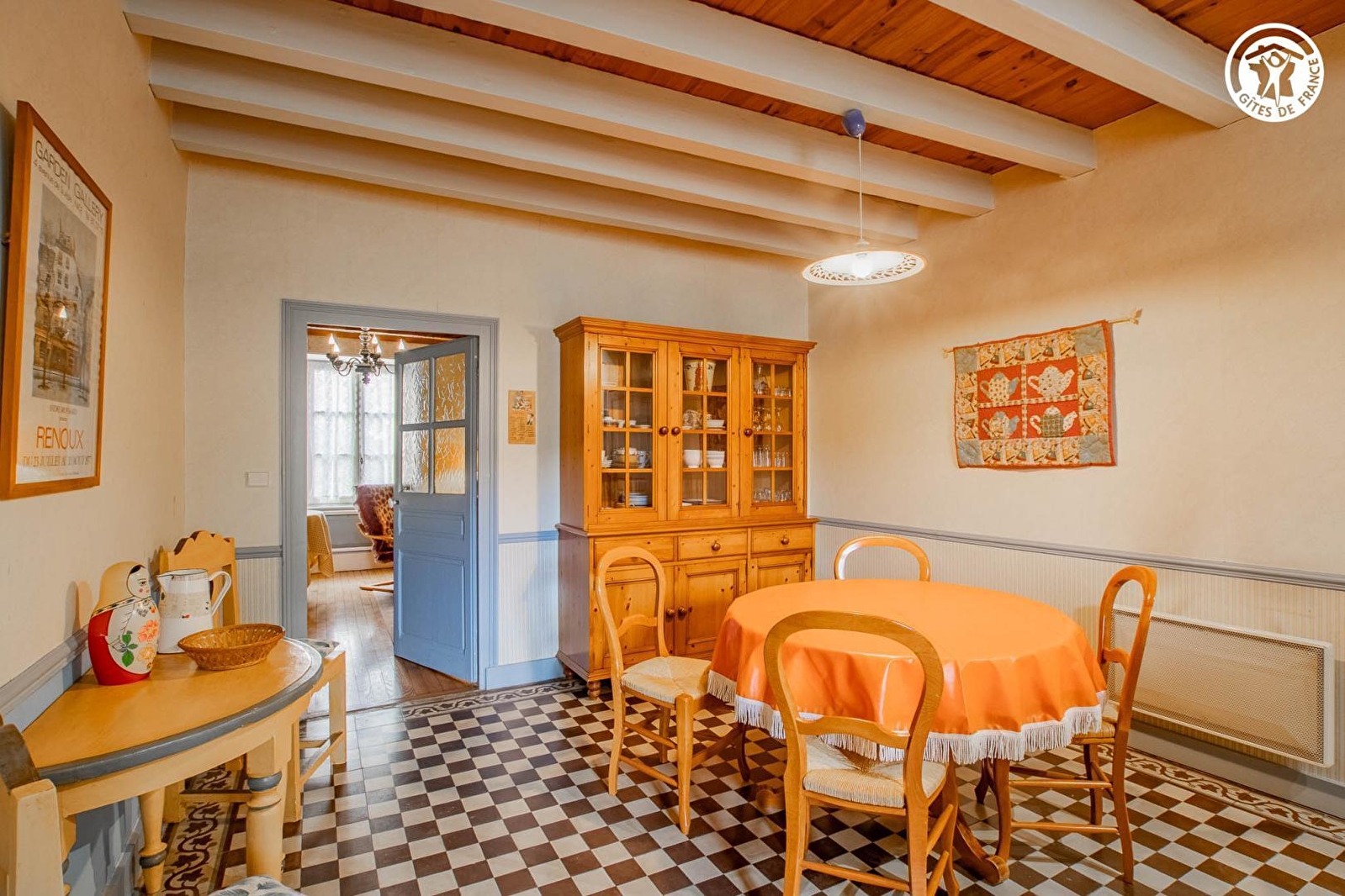 Passionnée d'histoire & de patrimoine, Josette vous ouvre les portes d'une élégante authentique demeure du XVIIIe siècle, intégralement revisitée en villégiature de charme, voisinant la superbe maison de maître datant de 1583 qu'elle occupe (elle également parfaitement restaurée), sise au calme en bordure de ruelle, à deux pas des premières vignes, au cœur d'un pittoresque & charmant petit village bourguignon typique, chargé de grande histoire & parfaitement sauvegardé (belle église néo-romane du XIXe, lavoirs & nombreuses "cadoles" réhabilitées avec soins). Totale tranquillité en pleine campagne viticole préservée du haut mâconnais, tout à la fois citadine & rurale, lové au creux d'un vallon de vignobles & prairies que dominent les crêtes boisées des vastes forêts sauvages environnantes, au sein d'un espace protégé en ZNIEFF pour ses richesses floristiques & faunistiques. Spacieux gîte de très bon confort. Grandes pièces & beaux volumes. Chaleureux cachet campagnard sublimé par l'âme dépaysante, un brin "rétro", d'une ancienne demeure cossue comme par une restauration patrimoniale soignée (exceptionnels sols en carreaux de ciment, portes moulurées, poutres dont une "datée", manteaux de cheminée en marbre, évier en pierre, tommettes… d'origine). Énormément de charme & de caractère. Intimiste jardin clos (500m² avec sa cour) blotti derrière d'historiques murs en pierres, doté d'un salon de jardin agréablement ombragé sous un platane "plus que centenaire". Large "galerie mâconnaise" traditionnelle (balcon abrité).
