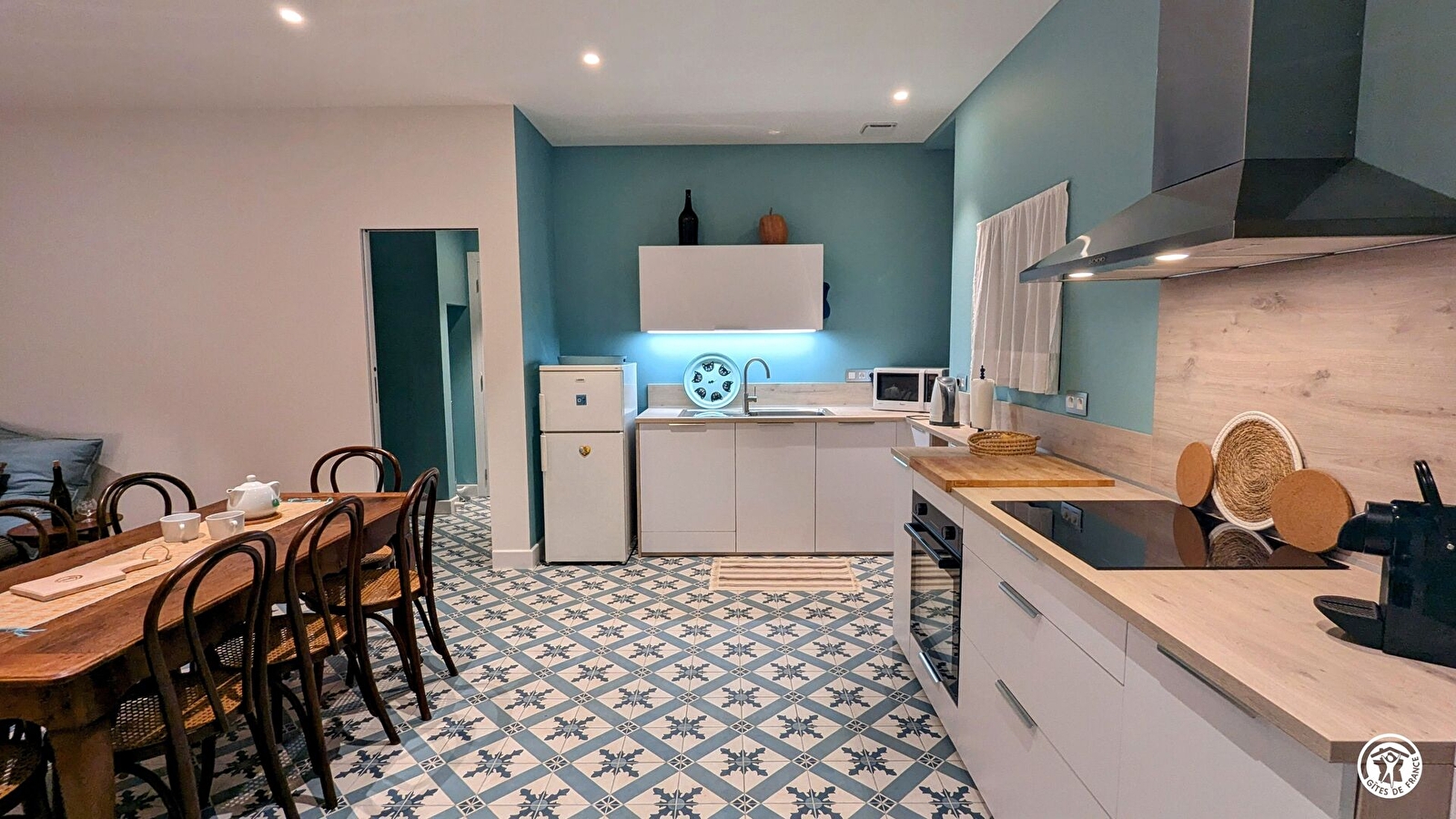 A proximité de Beaune, dans un petit village calme, gîte entièrement rénové avec goût, situé au rez-de-chaussée de la maison de la propriétaire. Belle cuisine moderne entièrement équipée ouverte sur salle à manger / salon (lit d'appoint de 120 cm). TV. Wifi. Enceinte connectée. 1 chambre avec 1 lit de 140 cm, 1 salle d'eau, 1 WC indépendant. Lit bébé, baignoire et chaise haute à disposition. Bel espace extérieur privatif, non clos, avec salon de jardin, transats, barbecue. Parking couvert privé sur place.