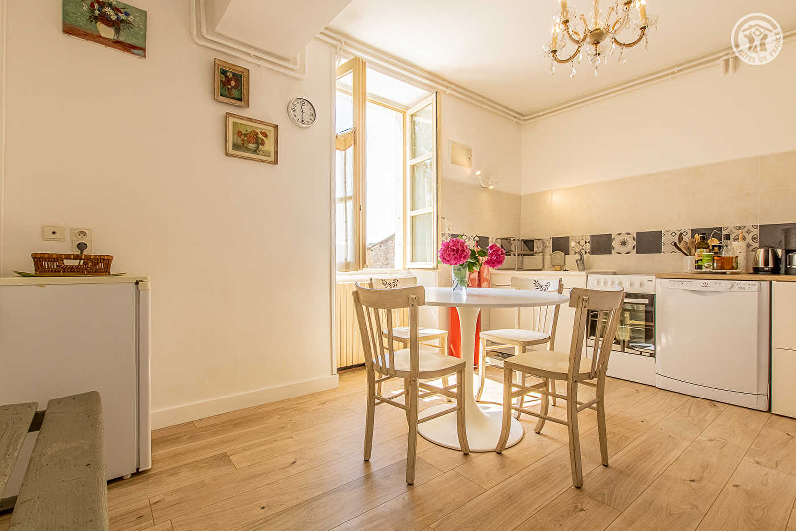 Composition : Maison de village mitoyenne comprenant 1 gîte + logement du propriétaire (indépendance totale). Wifi. Service de buanderie gratuit. Chauffage central gaz. Rdc : cuisine-séjour, salon (canapé convertible 2 p. de 160x200cm), 1 chambre (lit 2 p. 160x200cm), sdb (baignoire/wc). Terrasse privée. Cour-terrasse privée. Local vélos. Parking public aisé sur place. Commerces sur place.