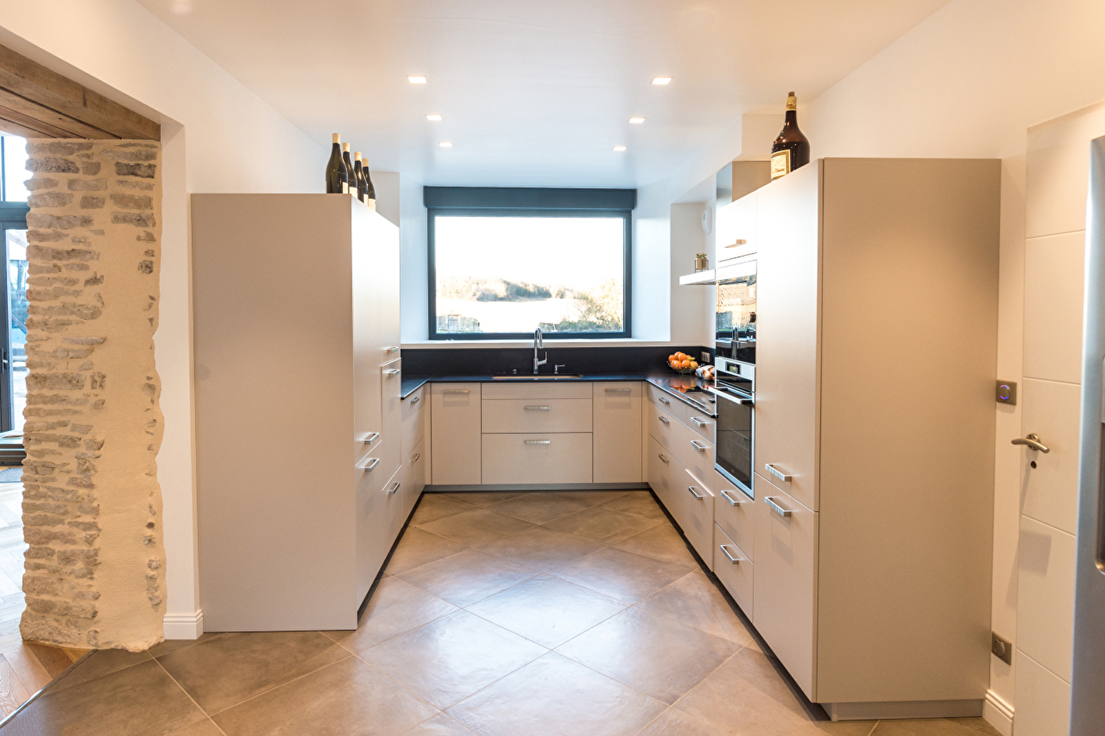 La demeure est un ancien chai de familial de 350m2 entièrement rénové avec des matériaux nobles.