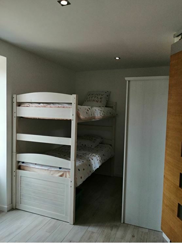 La chambre dispose d'un lit queen size avec literie neuve et confortable, ainsi que de 2 lits superposés.
