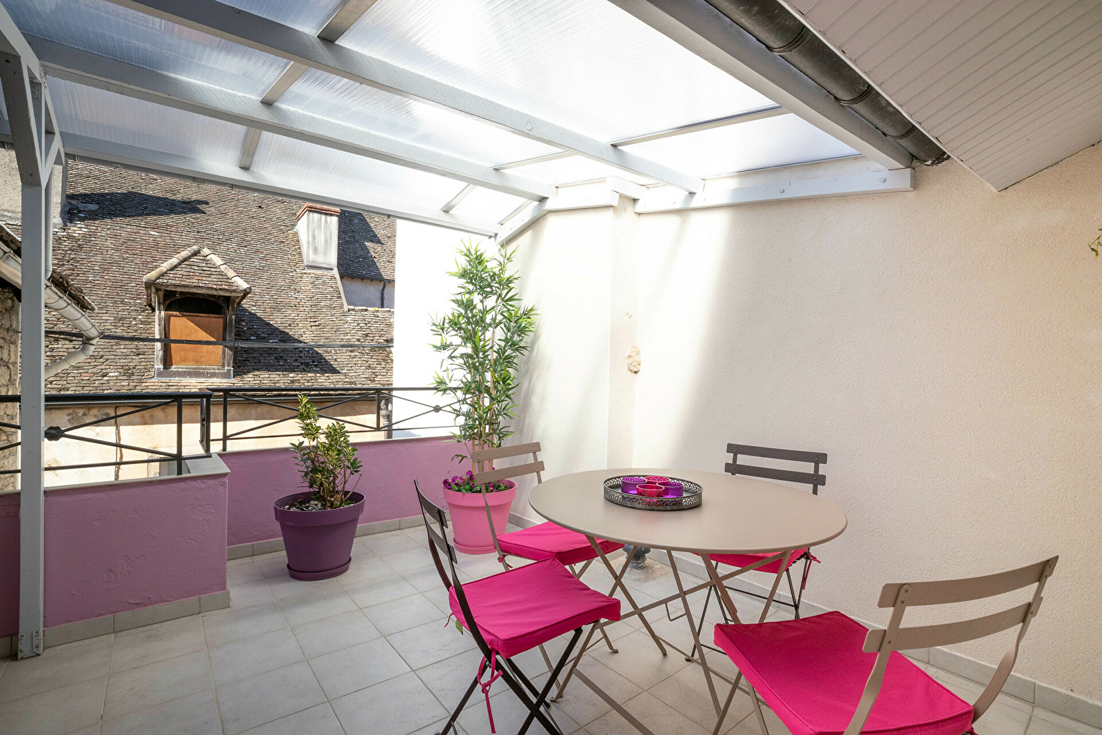 Dans un immeuble de caractère entièrement sécurisé au cœur du centre historique de Beaune, appartement (2ème étage avec ascenseur) de 58 m2 entièrement rénové avec terrasse semi couverte de 9.5m2 -