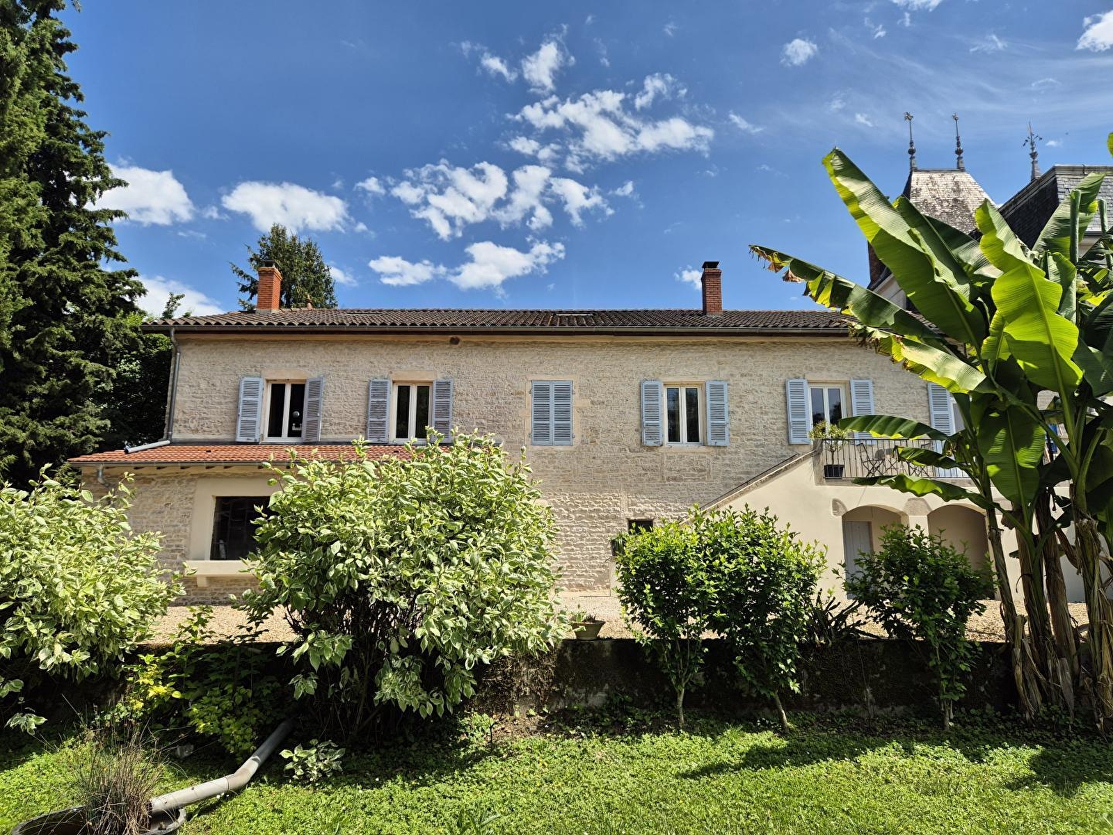 Charmante maison de caractère chargée d'histoire (ancien café…) de la fin 19ème siècle soigneusement rénovée, lovée sur les bords de la Saône sur l'itinéraire de la voie verte et de l'Eurovélo6 (parcours cyclable de l'Atlantique à la mer noire). Hameau résidentiel niché sur un site historique (ancien port fluvial commerçant de Pont de Vaux avec pont, canal et écluse toujours en activité) au sein d'un agréable cadre champêtre préservé de champs et prairies. Situation privilégiée au cœur du riche territoire du Mâconnais-Clunisois à 15 km de Tournus, 18 km de Mâcon et 26 km de Cluny, aux portes de la Bresse (de l'Ain et Bourguignonne). En toute proximité des vignobles du haut Mâconnais, de la route des vins et du circuit des églises & chapelles romanes. Gîte de bon confort. Très spacieux. Vaste pièce de vie. Chaleureux cachet campagnard. Atmosphère douce et dépaysante d'une ancienne demeure. Équipement complet de qualité. Petit balcon-terrasse ouvert sur la Saône complété par un second balcon côté "parc". Vaste terrasse en gravier ("sur cour"), exposée et ombragée. Magnifique propriété close de 3000m² (avec portail électrique) soigneusement aménagée et fleurie bordée d'un historique mur d'enceinte en pierres . Belle vue dégagée sur la Saône et ses rivages.