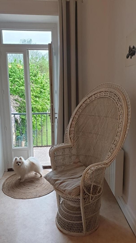 Composition : Gîte au 1er étage mitoyen à l'habitation des propriétaires (indépendance totale sans vis-à-vis). Wifi. Chauffage électrique + poêle à bois. Cuisine ouverte sur séjour, salon (accès balcon-terrasse vue Saône). 2 chambres (1 lit 140+1 lit 90/1 lit 140). Vaste salle de bain (baignoire + douche). WC indépendants. Terrain commun clos de 3000m² avec portail électrique. Petit balcon-terrasse + balcon + terrasse en gravier. Parking privé. Local fermé en sous-sol (vélos, bateau, matériel de pêche, remorque...). Chiens dangereux refusés (loi française). Commerces à 700m. Voie Verte et pêche sur place avec plusieurs points de mise à l'eau. Gares TGV Mâcon Loché 27 km.