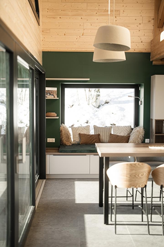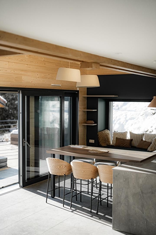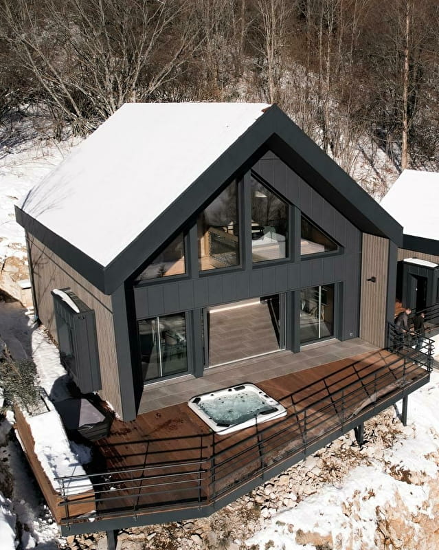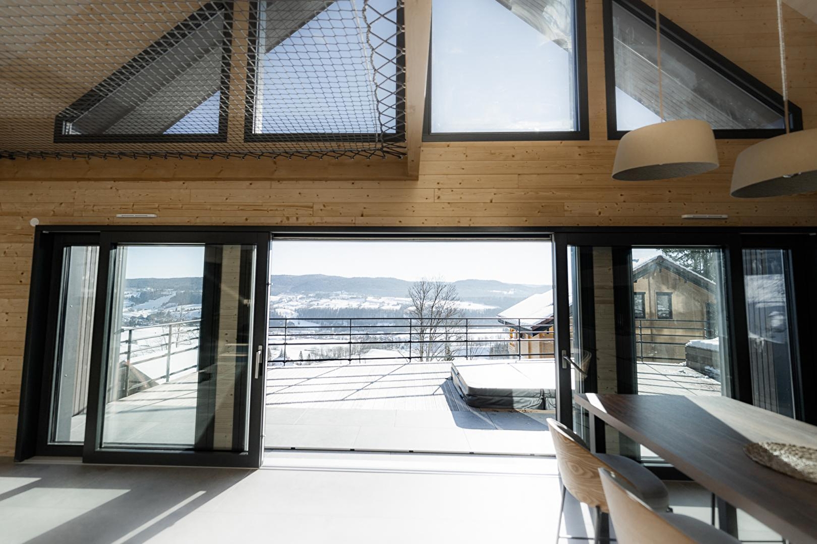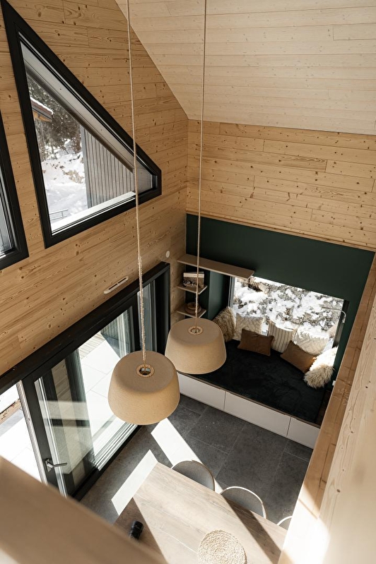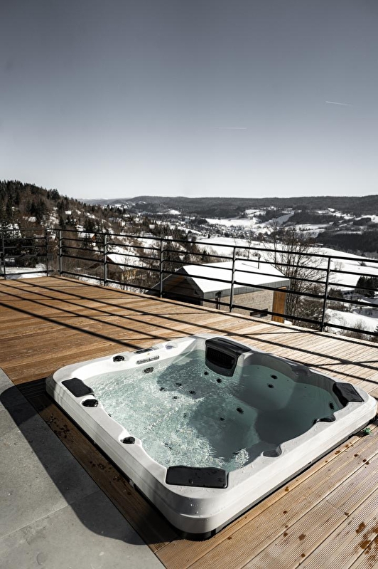 Un projet ambitieux et un propriétaire avide de défi, une addition réussie qui a donné naissance aux chalets Lynx Mountain : le Canada et le Boréal. Cyril, passionné de nature et de montagne a créé un gîte éco-friendly (murs en laine de cotons, luminaires en cartons recyclés, électroménager classe A, peinture écolabel...), respectueux de l'environnement et haut de gamme. Ce chalet scandinave, décoré dans un camaïeu de verts vous fera vivre une expérience unique et passer des vacances inoubliables. Au rez-de-chaussée, la pièce de vie est composée d'une cuisine toute équipée et d'un coin salon avec un bow window aménagé avec de douillets coussins pour se prélasser ou s'adonner à la lecture. Vous ne vous lasserez pas d'admirer la vue imprenable et apaisante sur la forêt du Risoux. Une chambre avec un 1 lit king-size (180*200), une salle d'eau avec une grande douche et un WC indépendant. A l'étage : une chambre avec 1 lit king size 180*200 et une seconde chambre avec 2 lits simples jumelables et une mezzanine avec un filet suspendu pour prendre de la hauteur! Une salle d'eau avec une grande douche Une salle de jeux commune aux chalets Canada et Boréal vous permettra de passer des moments conviviaux et de vous défier à la PS5. Côté extérieur, une magnifique terrasse en bois équipée d'un salon de jardin, d'un barbecue et de chaises longues ainsi que d'un spa aussi appréciable en été qu'en hiver. Alors n'attendez plus et venez vivre l'expérience Lynx Mountain