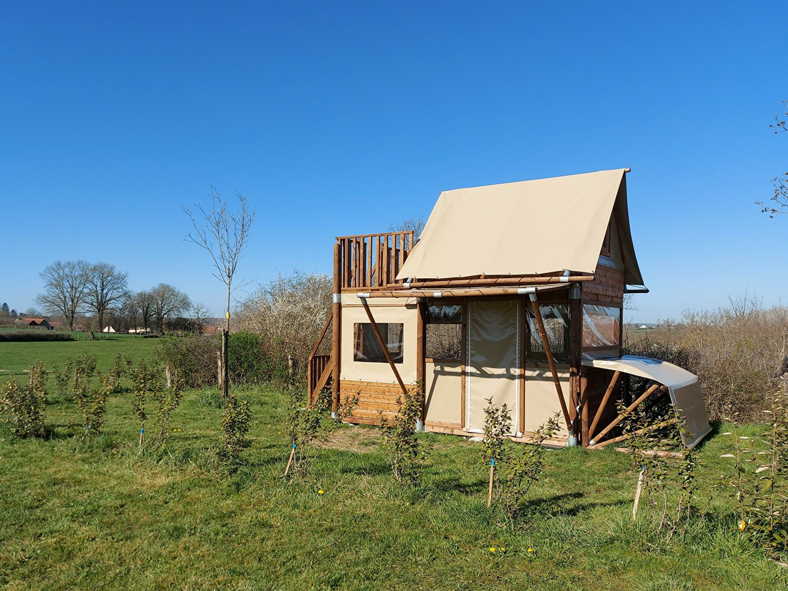 Envie d'une nuit insolite, en hauteur avec vue sur la campagne? Réservez votre caba'tente!