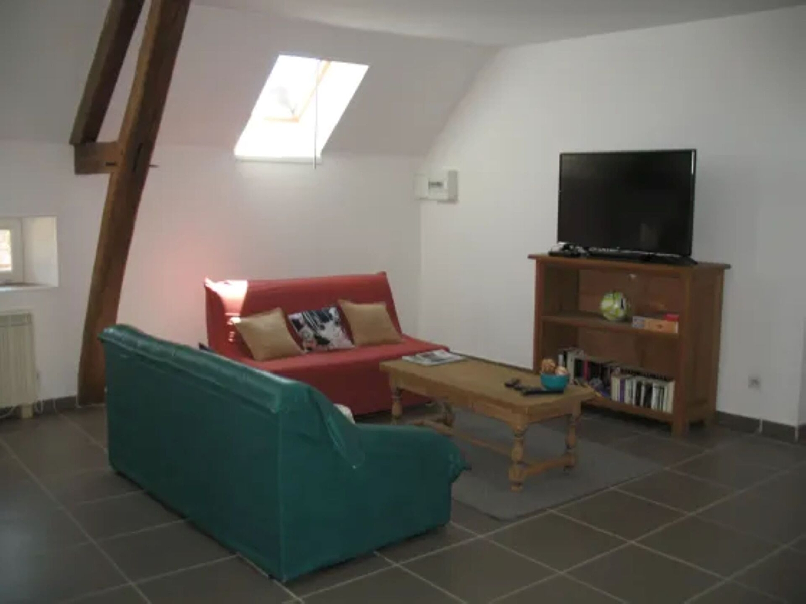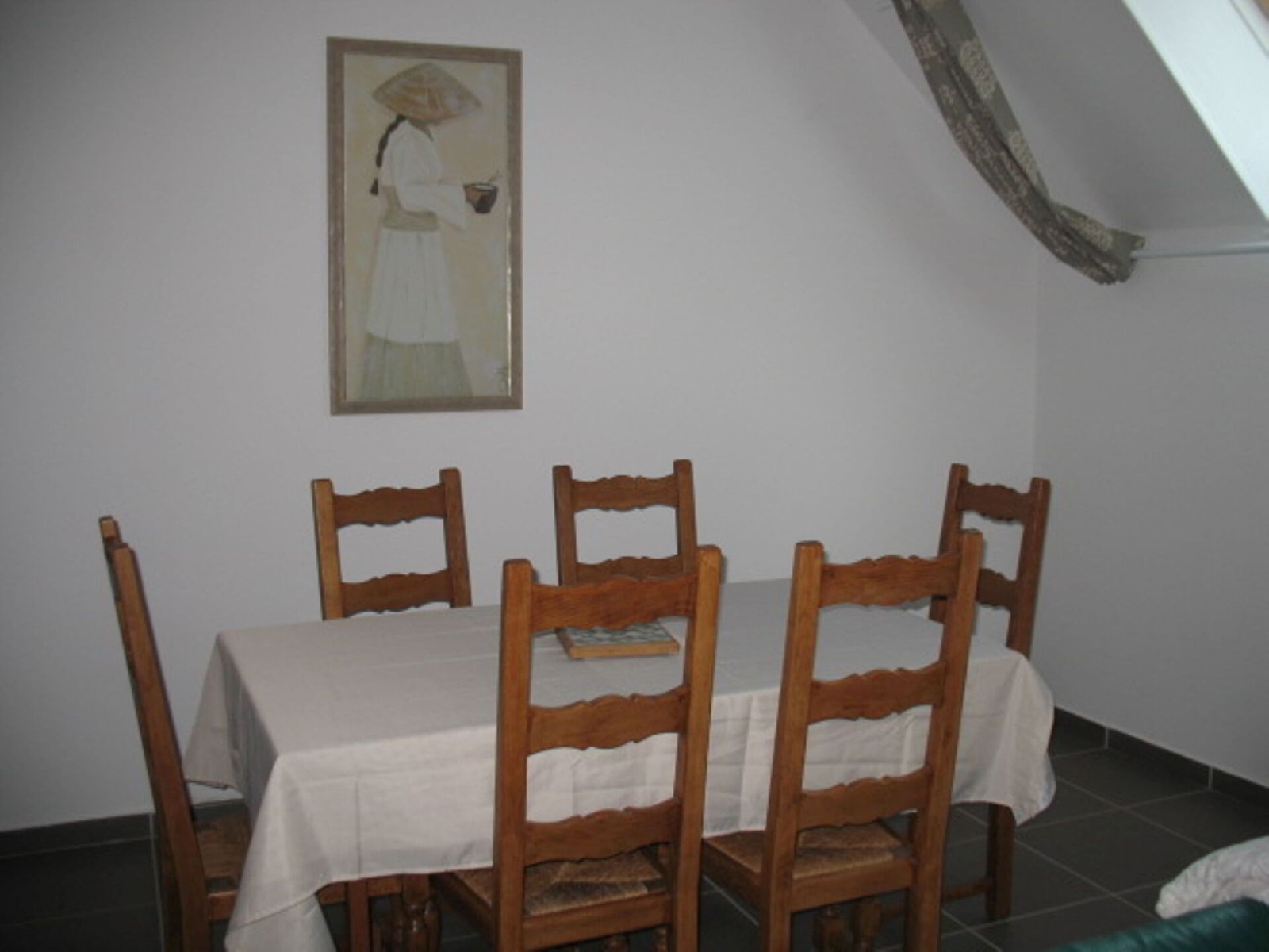 Ce confortable appartement, aménagé au premier étage d'une longère traditionnelle, est accessible par un escalier extérieur indépendant, garantissant ainsi une intimité totale. Il se compose d'un séjour lumineux, d'un coin cuisine entièrement équipé, ainsi que de trois chambres chaleureuses et confortables :