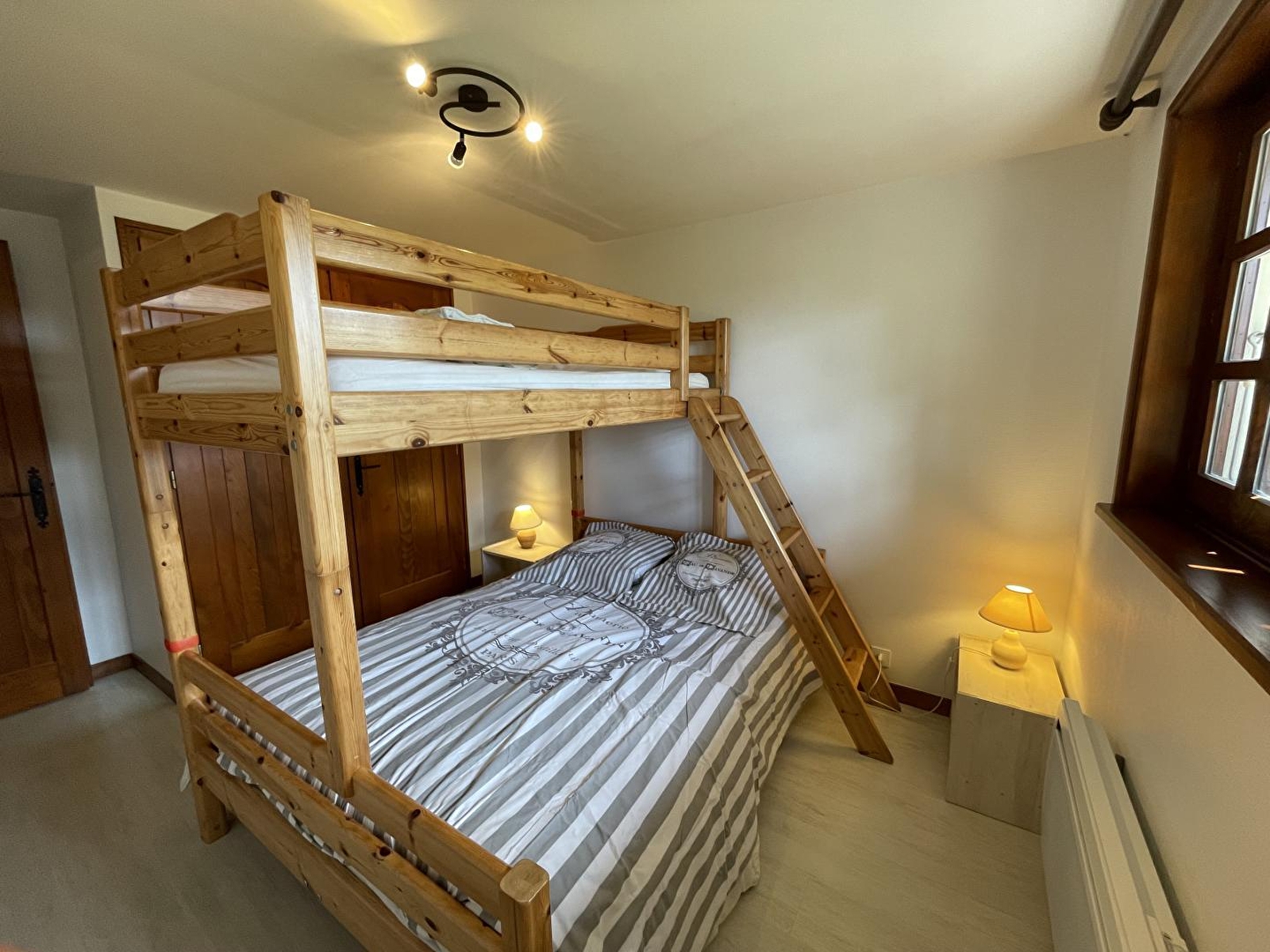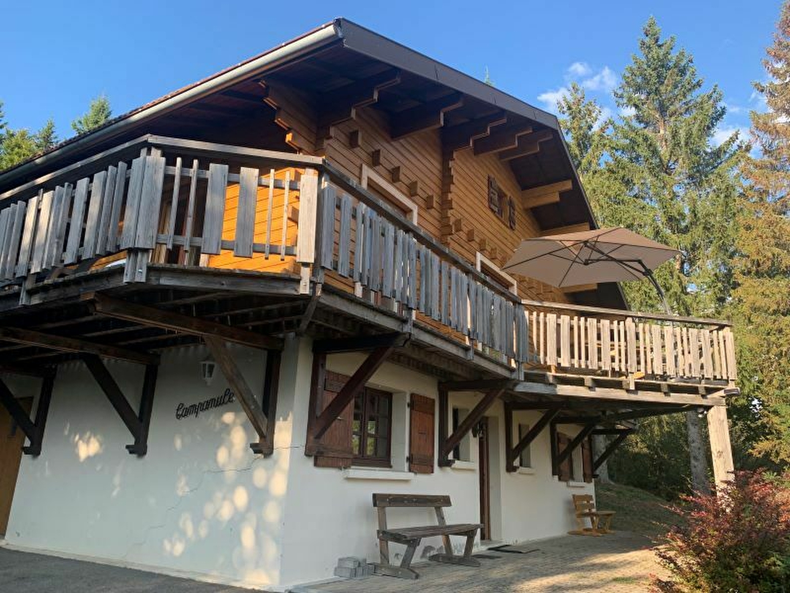 Chalet indépendant. Au rez de chaussée: lingerie avec sèche-linge,congélateur, 1 première chambre avec 1 lit 2 personnes et 1 lit 1 place et une deuxième chambre avec 1 lit 2 places, salle d'eau. A l'étage: cuisine séjour-salon avec TV Canalsat, 1 chambre avec 2 lits superposés (90x190) et TV, et une 4ème chambre avec 1 lit en 160, salle de bains, WC indépendant. Balcon, cour et jardin non clos, salon de jardin, barbecue. Chauffage compris. Bois pour cheminée fourni gratuitement. Parking privé sur place, volets dans les chambres. Dans le village nombreux commerces : fromagerie, supermarché, bureau de tabac, restaurant, magasin de ventes d'articles de sports et de locations de vélos et vélos à assistance électrique