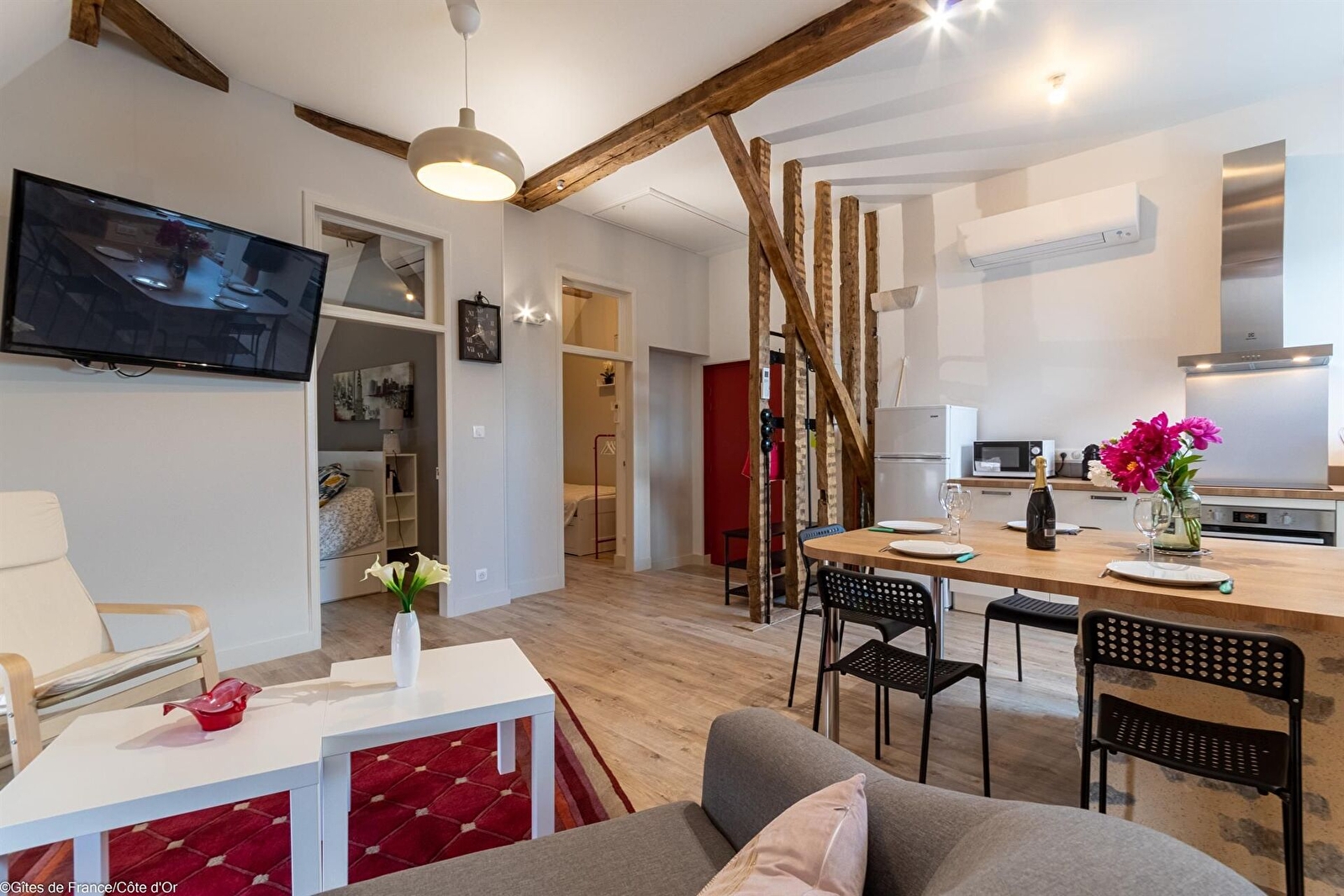 Au cœur du dynamique village d’Époisses, célèbre pour son fromage et en face du château, découvrez 2 appartements de caractère entièrement rénovés.