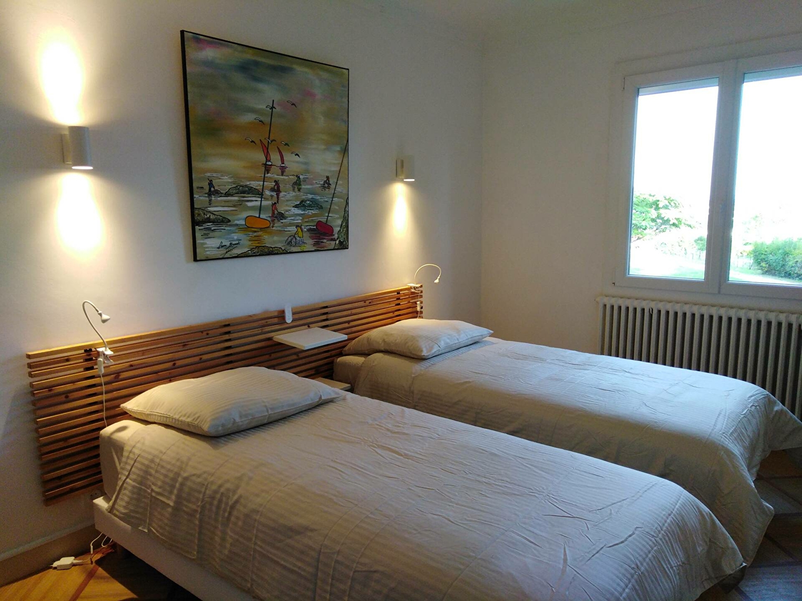 Charmante maison individuelle 75 M2 sur les hauteurs de la ville, vue dégagée, jardin arboré, au calme, parking dans le jardin, 2 chambres doubles idéal 4 personnes possibilité 2 personnes suppl . sur canapé lit donnant 6 couchages, cuisine équipée, lave linge ,lave vaisselle, douche italienne avec WC + WC individuel, salon équipé TV internet WIFI gratuit , véranda sur jardin,barbecue, salon jardin, quartier hôpital Pasteur, commerce, boulangerie ,pharmacie 5mn à pied ,possibilité garer motos dans sous sol, ce dernier étant réservé au propriétaire. Toutes charges comprise, elect+ chauffage+taxe séjour+wifi GRATUIT