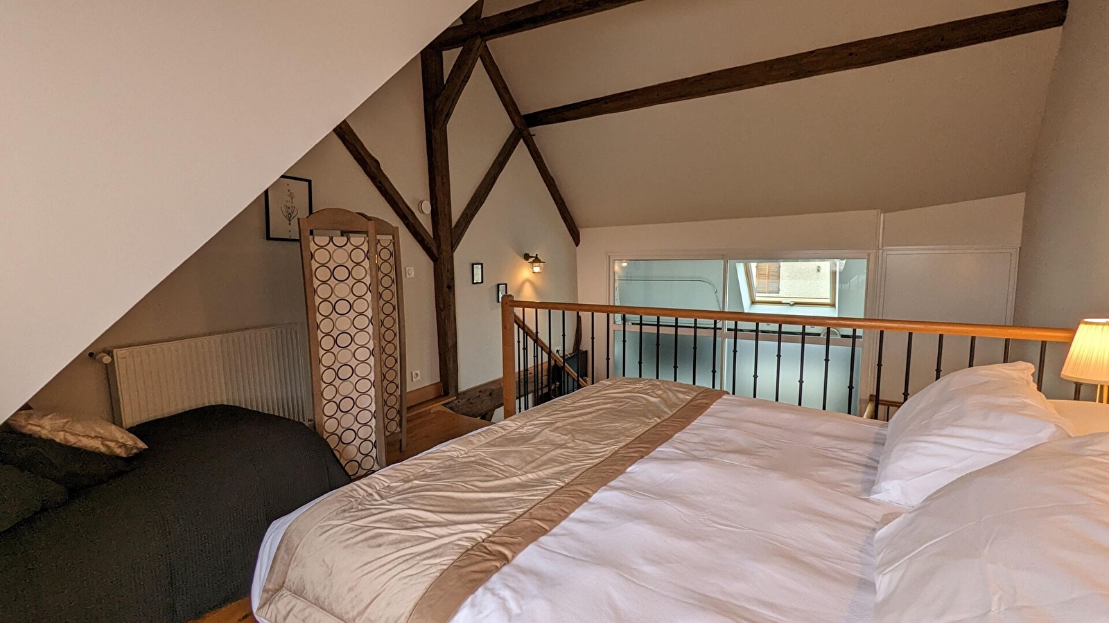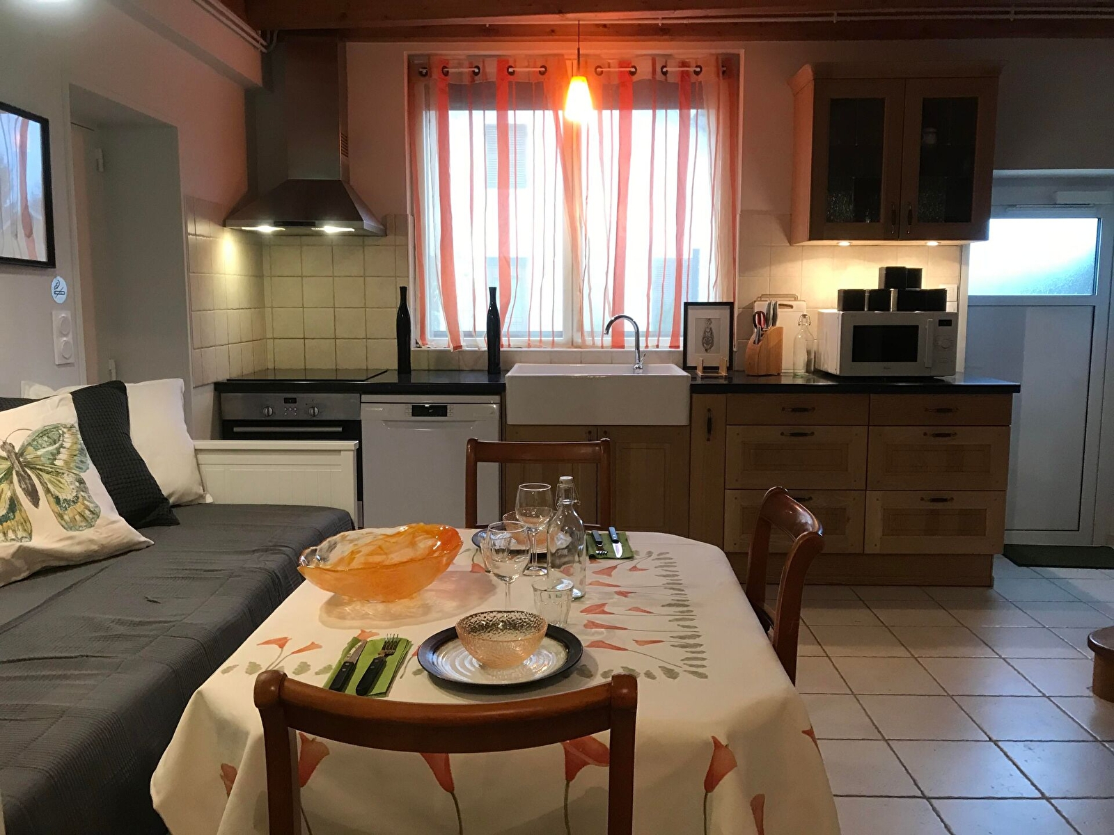 En rez de jardin, vous disposerez d’une cuisine équipée. A l’étage : coin salon avec TV écran plat (canal sat), chambre en mezzanine dotée d’un lit 180x200cm et d’un lit 90x190cm et salle de bain spacieuse avec baignoire et WC. 2 couchages possibles dans lit gigogne (2x80x200cm),facturé 15€/nuit/pers. Facilité de stationnement à 50 m sur le parking du village.