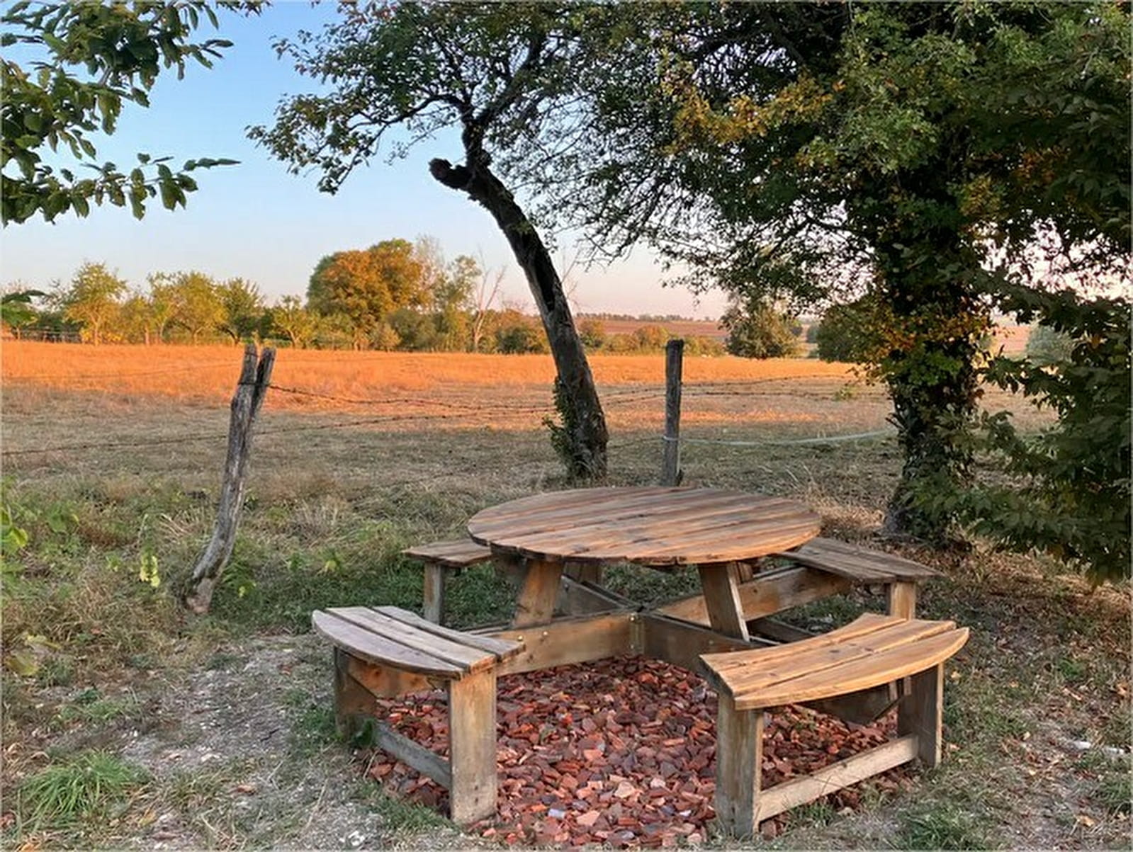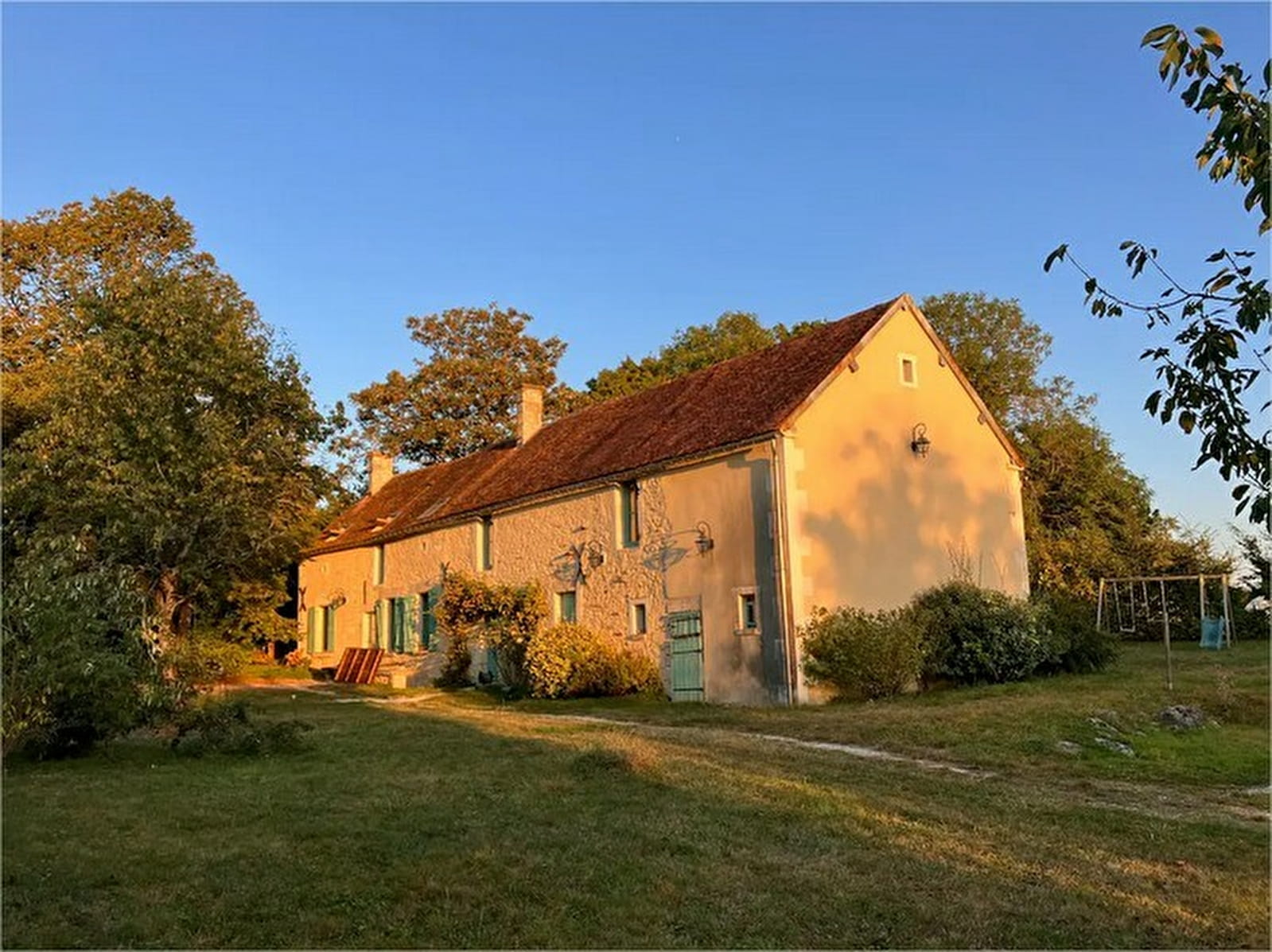 * Grand jardin de 2000m² équipé d’un portique enfants, d’un terrain de boules, de tables de jardin (dont une grande table 12 couverts), d’une piscine avec abri, dans un hameau au calme donnant sur la campagne