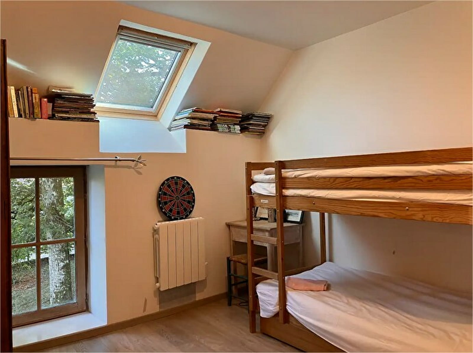 Une chambre dortoir avec 4 lits simples (dont 1 lit superposé pour enfant > 6 ans et 1 lit mezzanine pour enfant > 12 ans)