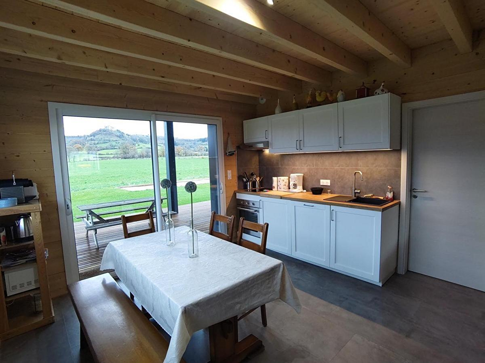 Situé dans une petite rue calme en impasse, très joli chalet entouré d'un terrain privé de 1000m². Belle terrasse bois abritée de 30m² avec une vue panoramique sur le château de Belvoir. Abri de jardin sécurisé pour ranger vélos, cannes à pêche, etc. Terrain de pétanque. Tous commerces sur la commune. Idéalement situé au centre du département entre Besançon, Montbéliard et Pontarlier.