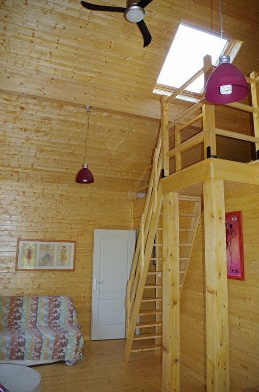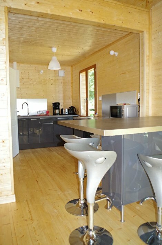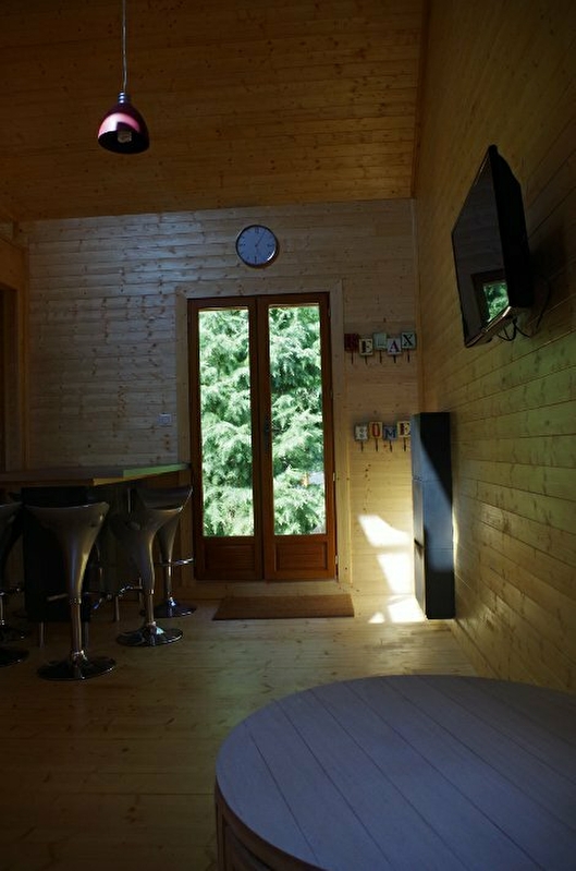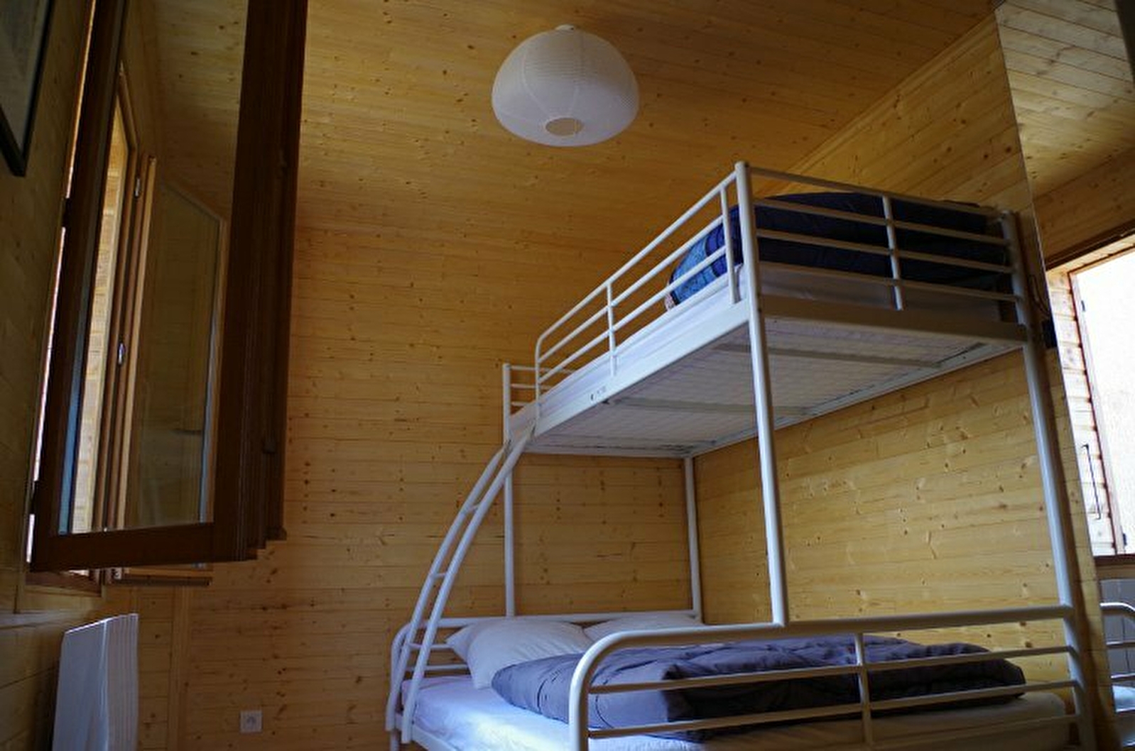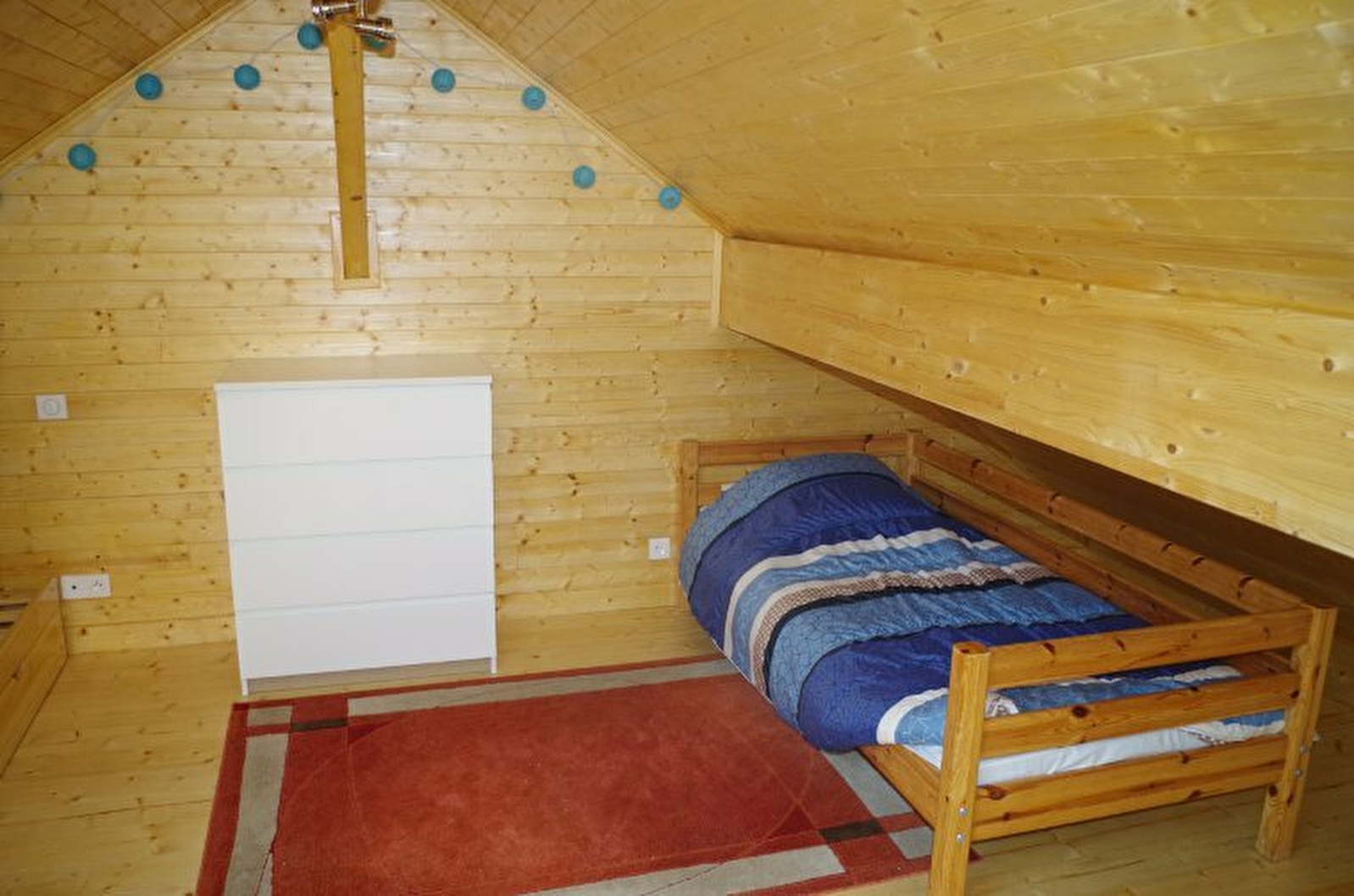 Chalet indépendant situé au calme, en lisière de forêt et offrant une jolie vue. D'une surface de 45 m², il comprend une cuisine équipée, un salon avec canapé convertible, 1 chambre pour 3 personnes (1 lit double et 1 lit simple) et une grande mezzanine avec 3 lits simples. Grande terrasse en bois avec salon de jardin et barbecue. Matériel bébé sur demande (chaise haute, lit parapluie, baignoire bébé).
