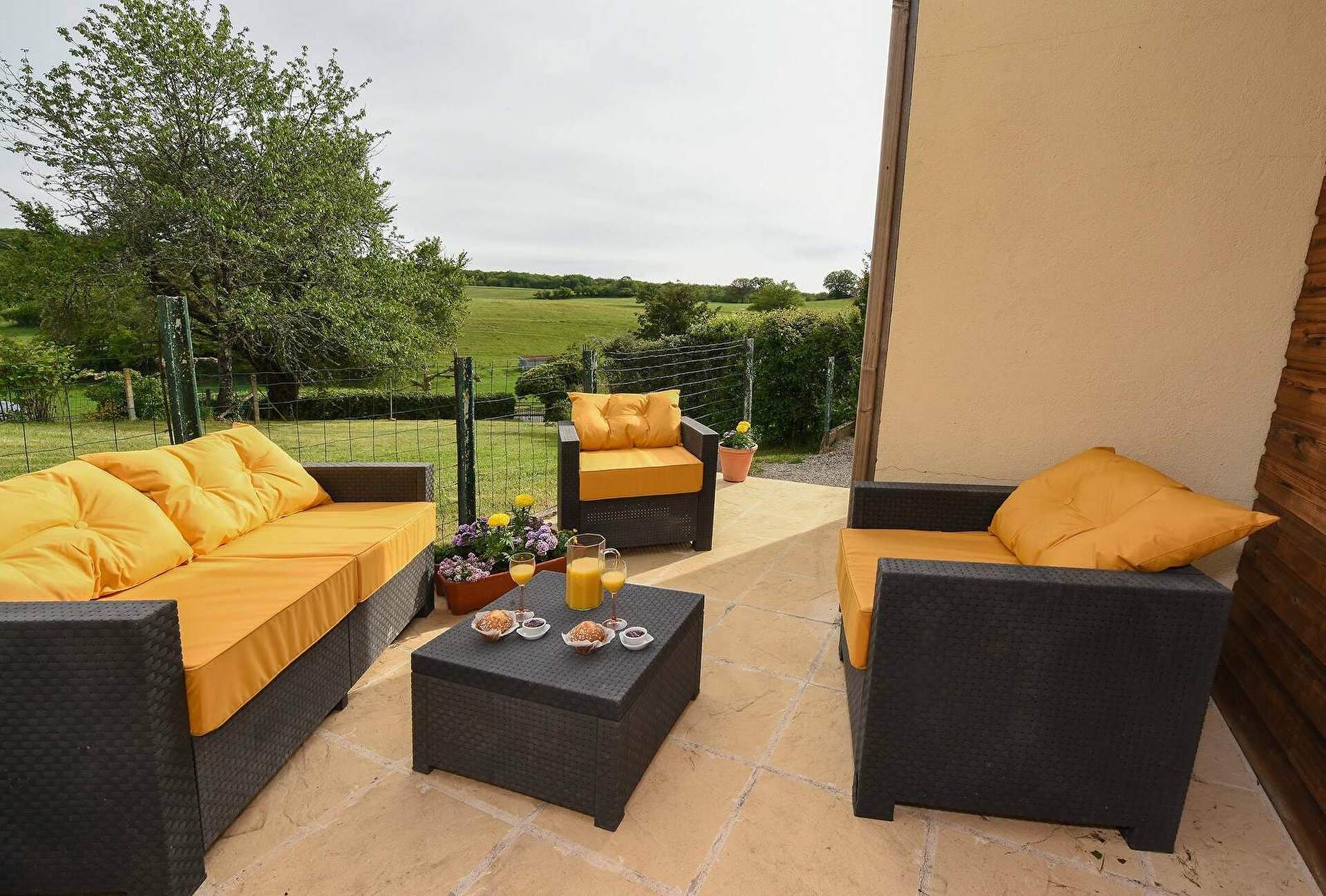A l'extérieur, pour vos moments de détente dans la cour ou dans le jardin, un salon de jardin.