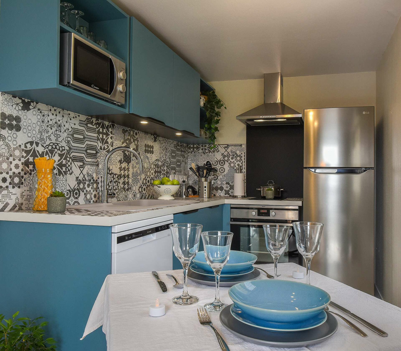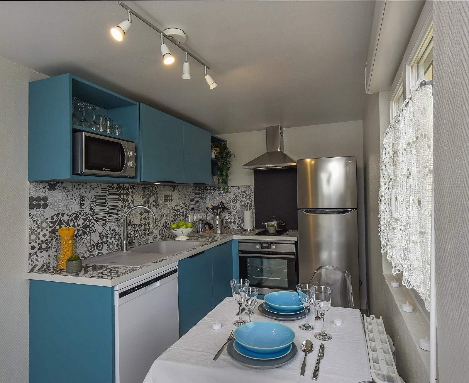 - d'un séjour/cuisine équipée très fonctionnelle (avec four traditionnel et four micro ondes) avec téléviseur à écran plat