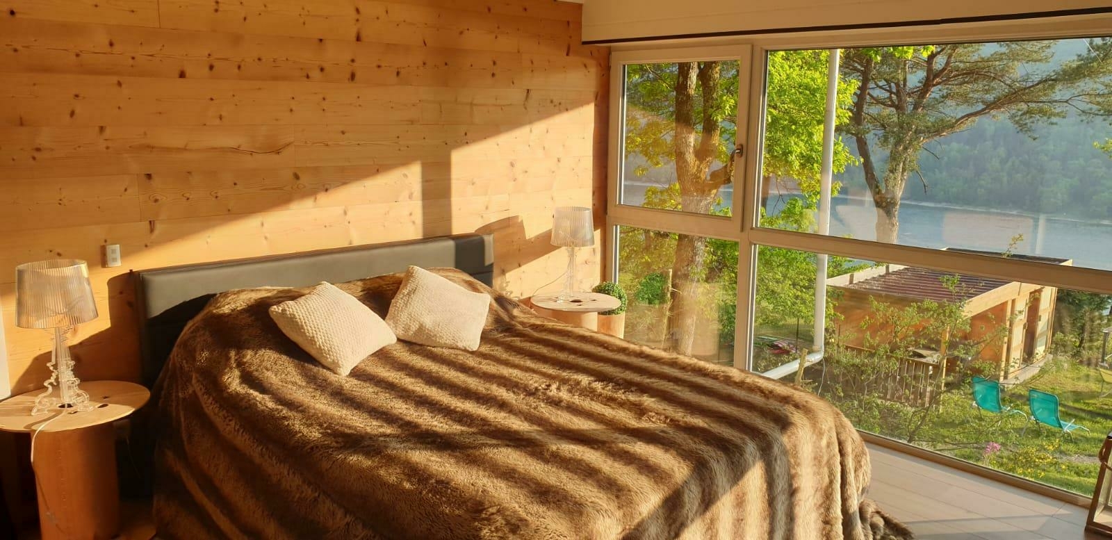 Chalet spacieux standing, terrasse avec vue panoramique sur le LAC DE VOUGLANS! 4 chambres + 3 salles de bains permettent des séjours en famille ou entre amis jusqu'à 10 personnes. Le lac se trouve à moins de 10 minutes pied. Grand terrain privé avec salons apéritifs et repas, surplombant le lac. Deux chambres bénéficient d'une vue lac exceptionnelle. Quartier résidentiel très calme pour assurer des vacances zen en 100% mode détente! Restaurants à 500 mètres et commerces à 5 minutes en voiture.