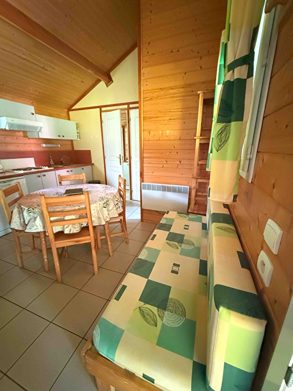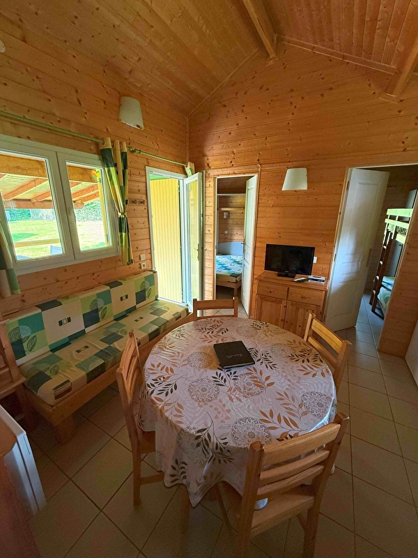 Chalet Campanules N°36. Les 4 chalets loisirs sont situés sur le Camping "La Pierre" classé 2 étoiles 54 emplacements, Camping Qualité, et Qualité Tourisme et Franche-Comté. Proche de Melisey, Station Verte de Vacances , dans un site calme et verdoyant, un lieu idéal pour les vacances en famille, découverte et activités multiples. Les chalets sont idéalement placés, à l'extrémité du camping, en lisière de forêt, proposant un bel espace vert, et parking privatif. Le chalet dispose d'une terrasse couverte, sans vis-à-vis, avec barbecue et salon de jardin. Un espace cuisine équipée/séjour, 1 chambre 2 pers, 1 chambre 2 pers, 1 chambre 2 pers (lits superposés), 1 salle d'eau. 1 WC.
