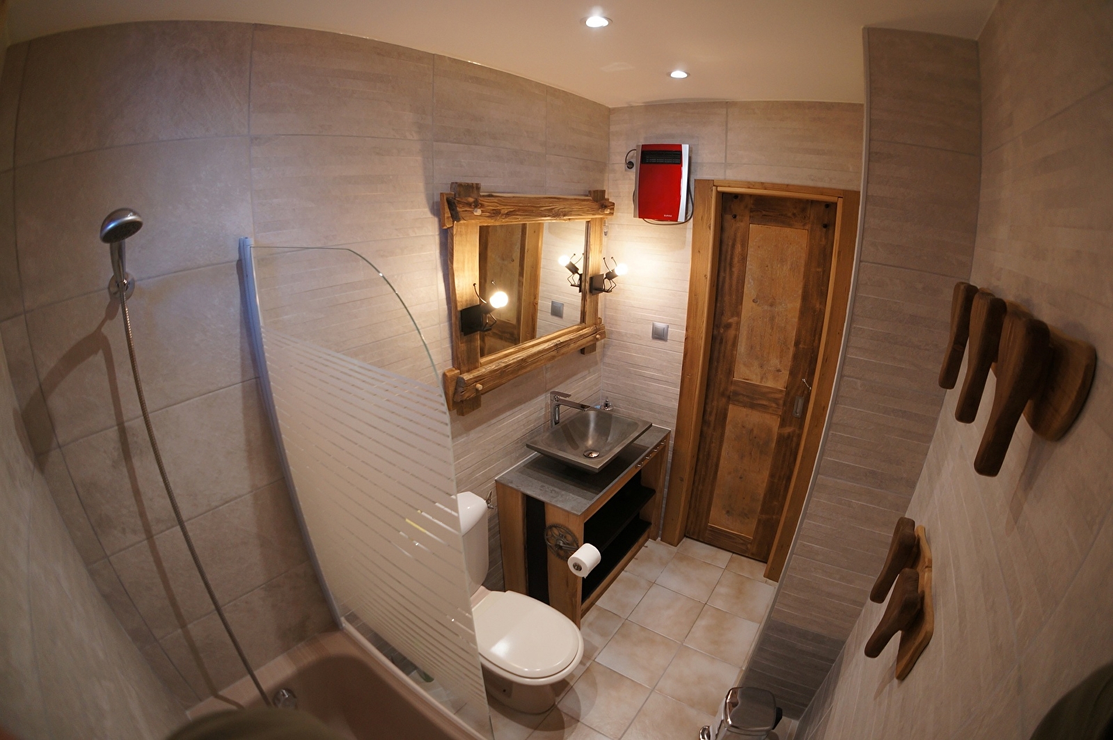 Il est composé d'une chambre avec un lit double et d'un lit superposé, une salle de bain avec baignoire, une cuisine et une salle à manger/séjour avec un clic-clac qui fait lit si vous avez besoin d'un deuxième espace couchage distinct.