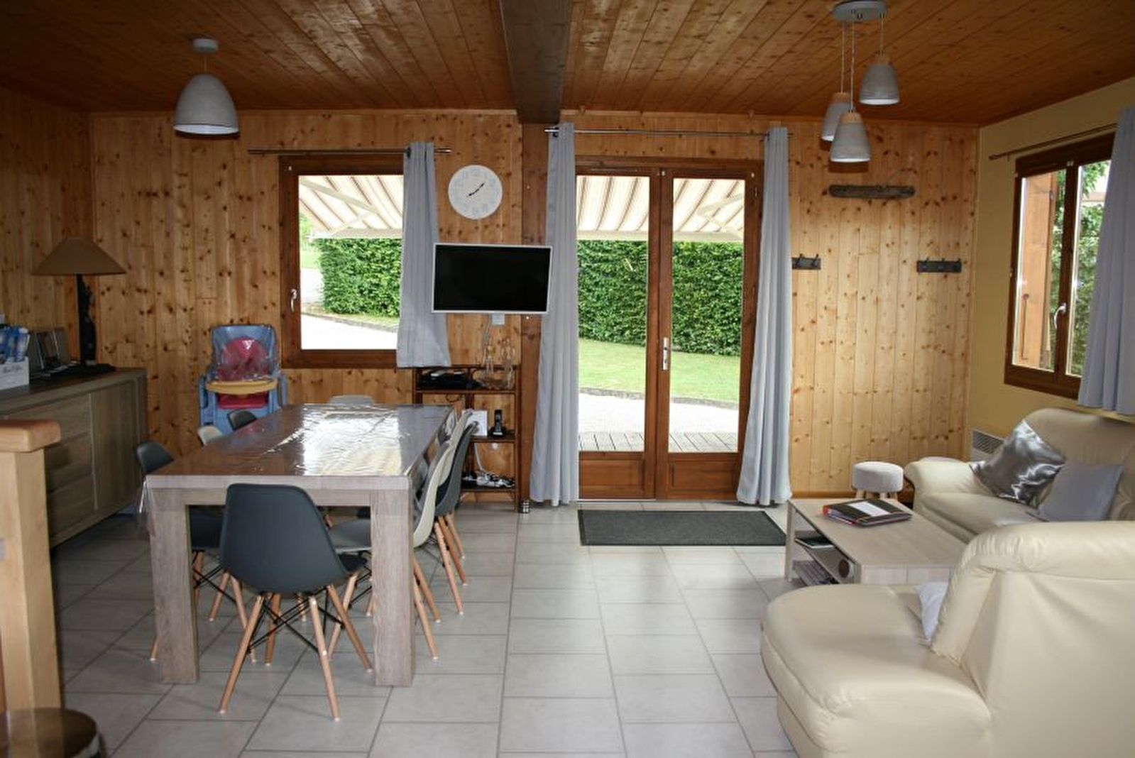Bienvenue au chalet des 7 Aventuriers! Situé sur un terrain entièrement clos de 1000 m², il se compose au rez de chaussée d'une pièce de vie lumineuse avec cuisine intégrée toute équipée, d'un salon (avec TV) offrant un accès direct à une terrasse couverte, d'une chambre avec 1 lit double (140*190), d'une salle d'eau avec WC et d'une buanderie avec lave-linge et sèche-linge. A l'étage, 2 chambres : l'une avec 2 lits gigognes (soit 4 couchages) et l'autre avec un lit double (140*190), d'une salle de bain avec baignoire et d'un WC séparé. Côté extérieur : salon de jardin avec barbecue et transats. Les petit plus : table de ping-pong et baby-foot Note : ce gîte est recommandé pour accueillir 6 adultes et 2 enfants ( une chambre accueille 4 couchages en lit gigogne) Frais de consommation électrique selon consommation :un relevé des compteurs sera effectué lors de l'entrée et en fin de séjour (environ 10 à 15€/semaine sans utilisation du chauffage électrique ou 40 à 60€/semaine avec une utilisation maitrisée du chauffage électrique en saison hiver). A proximité : Cascades du Hérisson, Lacs de Chalain, Vouglans, Clairvaux les lacs musée du jouet à Moirans en Montagne, Musée de la Vache qui rit à Lons le Saunier. Activités de plein air : Randonnées, parcours en vélo, pêche, baignade, activités sportives et nautiques comme l'accrobranche ou le kayak A voir : Saut de la Saisse et marmites de Géant dans le village, Belvédère des 4 lacs de la petite écosse, Pic de l'aigle, Reculée et cascade de La Frasnée, Belvédère de la dame blanche à Bonlieu, Reculée des planches à Baume les Messieurs Terroir : Fruitières à comté, Vins et Charcuterie du jura... Réduction de 40 euros pour toute réservation de 15 jours minimum. Note : la caution est obligatoire, si vous n'avez pas de chéquier, merci de prévoir de l'espèce ou de faire un virement bancaire quelques jours avant votre arrivée, elle vous sera restituée 15 jours après la fin de votre séjour. Forfait ménage à 90 euros si animal.