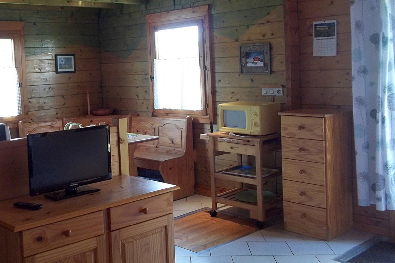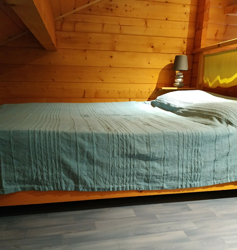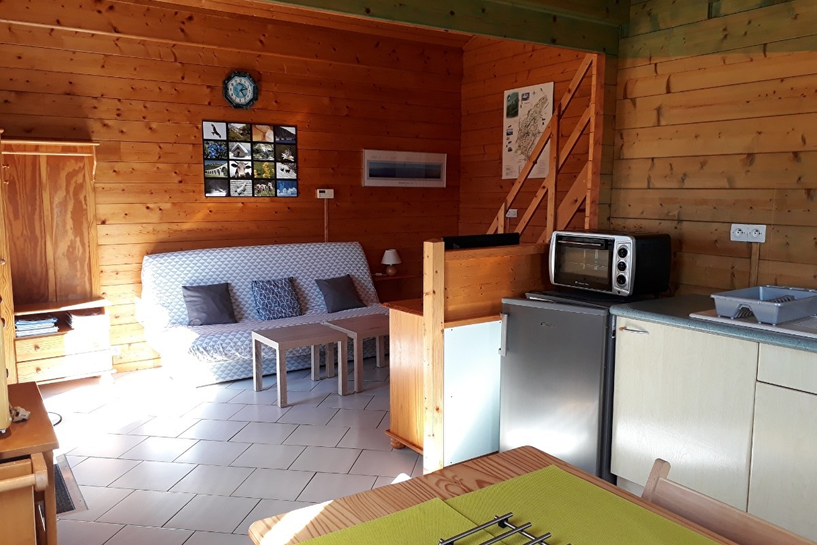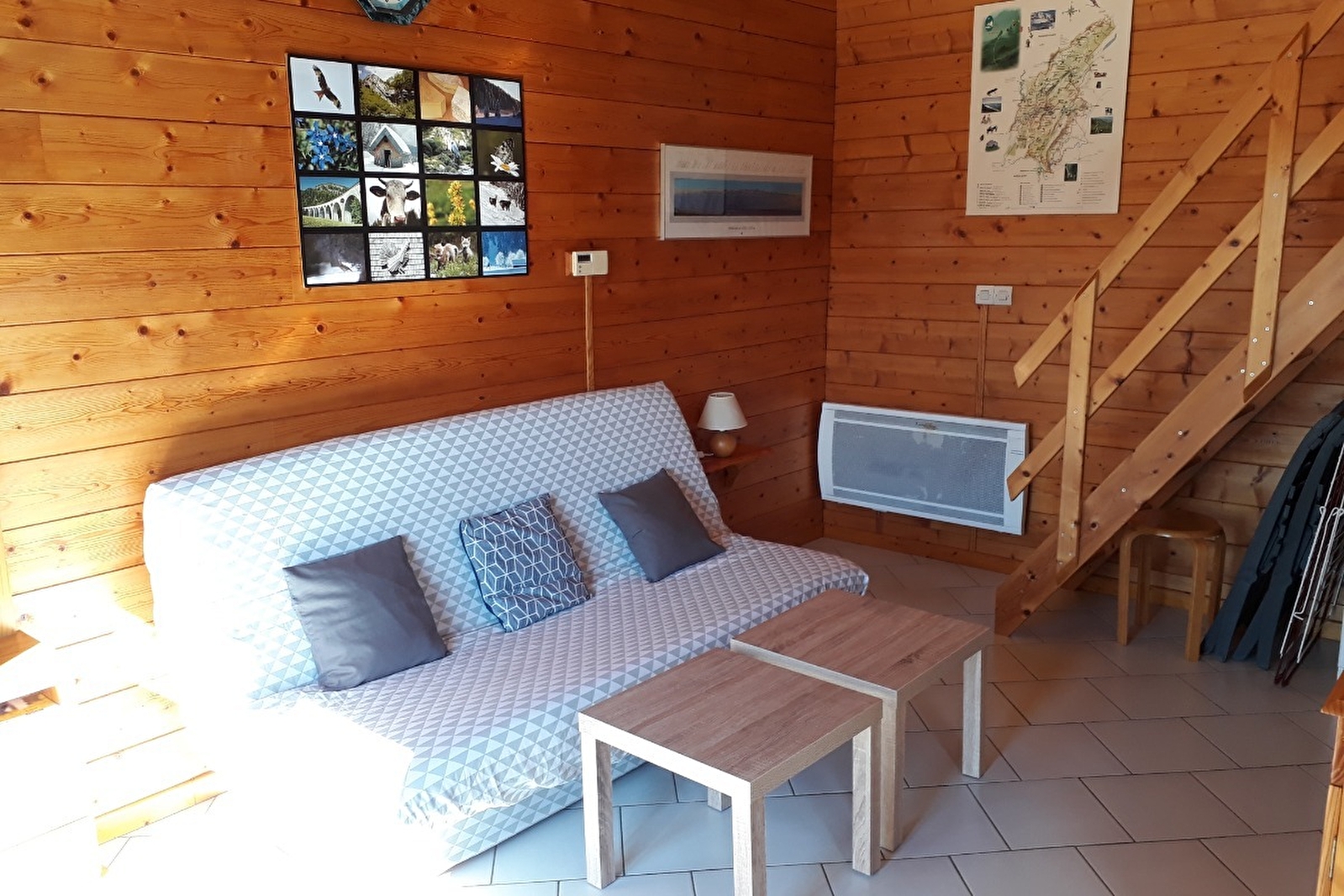 Il vous offre un coin salon cosy et chaleureux avec un canapé clic-clac confortable qui vous servira de lit. Il dispose également d'une chambre en mezzanine avec un lit double.