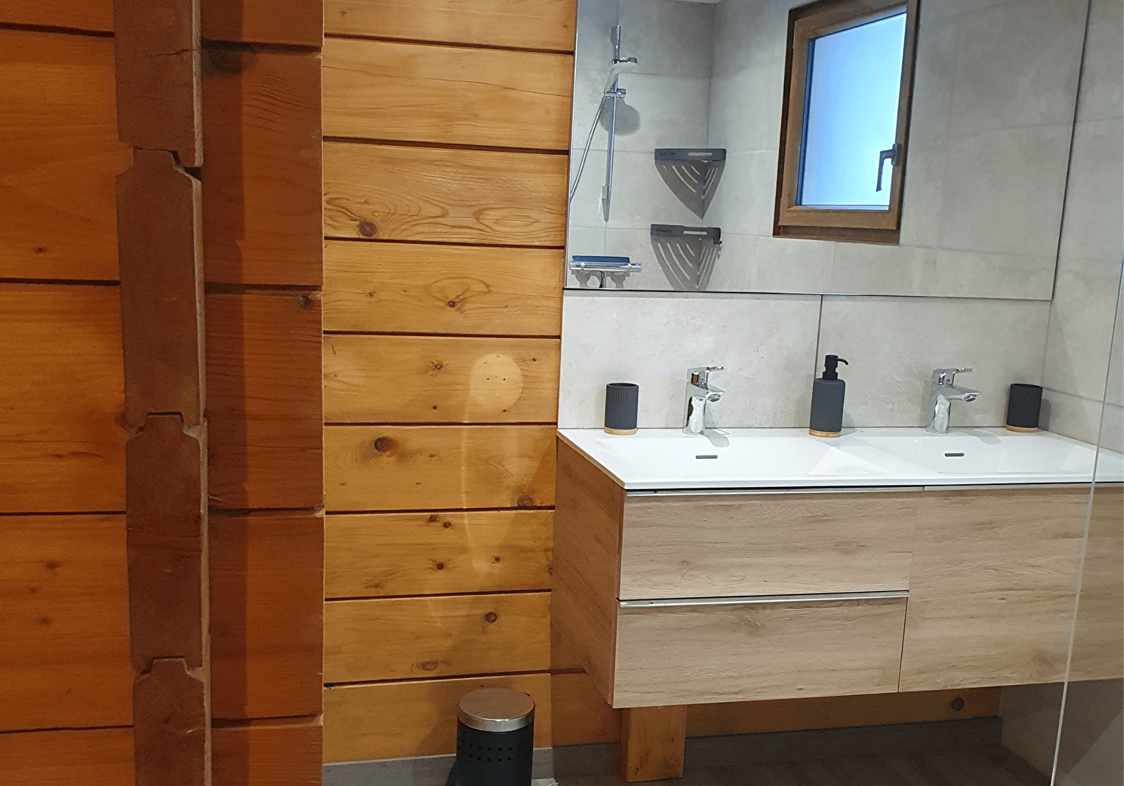 Le petit plus du chalet, un garage pour deux véhicules au sous-sol avec porte automatique (non négligeable en période hivernale).