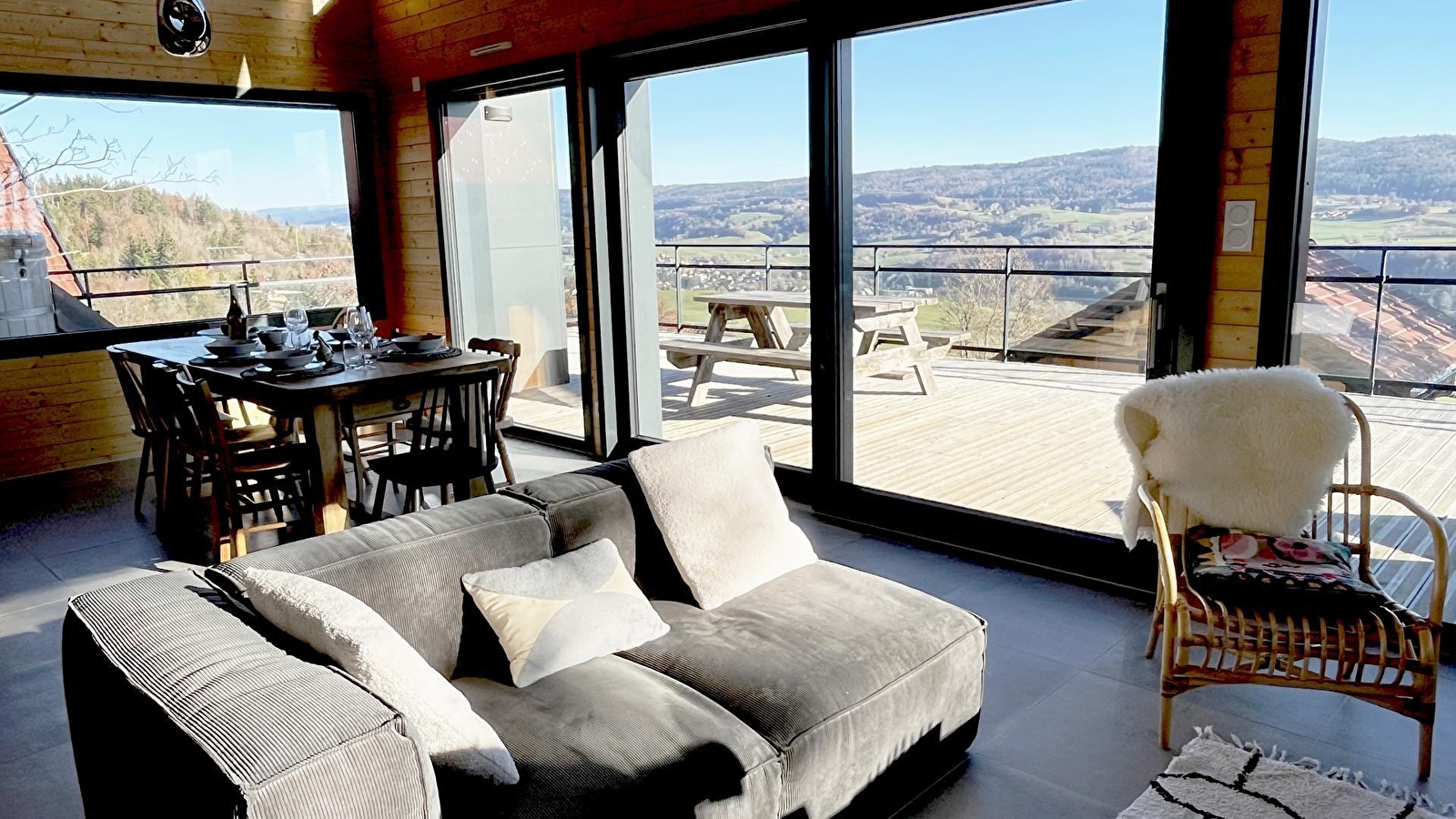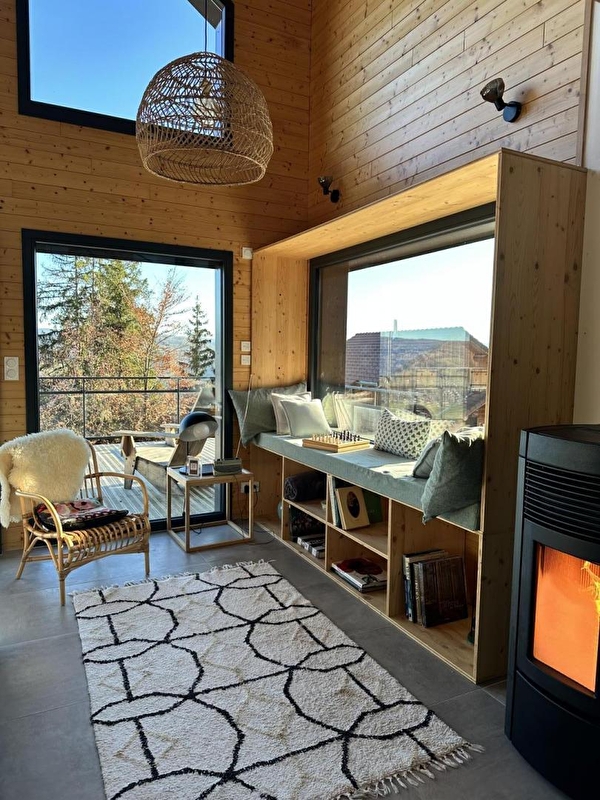 Idéalement situé sur les hauteurs de Foncine le Haut, laissez-vous séduire par ce splendide chalet totalement neuf offrant une vue imprenable sur la nature environnante. De grand confort , vous trouverez au rez-de-chaussée une vaste et lumineuse pièce à vivre composée d'une cuisine entièrement équipée et d'un salon de détente. Une première chambre équipée d'un lit de 160x200. Belle salle d'eau avec grande douche à l'italienne. Wc indépendants. Buanderie avec tout le nécessaire pour l'entretien du linge te de la maison. A l'étage, mezzanine salon avec télévision écran plat et deux chambres. La première avec un lit de 160x200cm, la seconde avec 3 lits de 90 (dont 2 lits superposés) pouvant être rapprochés pour former grâce à un sur-matelas un lit de 180x200cm. Salle d'eau avec douche à l'italienne, et wc indépendants. Une seconde mezzanine à l'étage supérieur est aménagée en chambre avec un lit de 140cm, et accessible par une échelle de meunier mais interdite aux jeunes enfants pour une question de sécurité. L'échelle peut cependant être remontée facilement pour la tranquillité des parents. Côté extérieurs, magnifique terrasse en bois équipée de salon de jardin, barbecue, chaises longues ainsi qu'un spa en bois de cèdre aussi appréciable en été qu'en hiver. Derrière le chalet se trouve une forêt qui vous permettra peut-être d'apercevoir des animaux par les fenêtres, ou encore de construire de jolies cabanes. Vous l'aurez compris, ne tardez plus avant de réserver ce coin de paradis au ressourcement garanti !